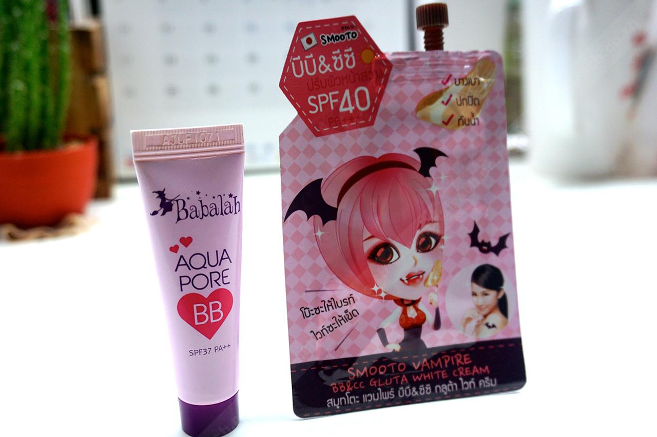 แนะนำ : มี 2 ตัวที่ใช้อยู่ตอนนี้คือ Babalah Aqua Pore BB และ Smooto Vampire BB&CC Gluta White Cream ทั้งสองตัวนี้ปกปิดรูขุมขนได้ดี หน้าสว่างเรียบเนียนขึ้น ช่วยป้องกันผิวจากแสงแดดได้ด้วยสาร SPF กันน้ำได้ดี ไม่เยิ้ม ไม่หลุด