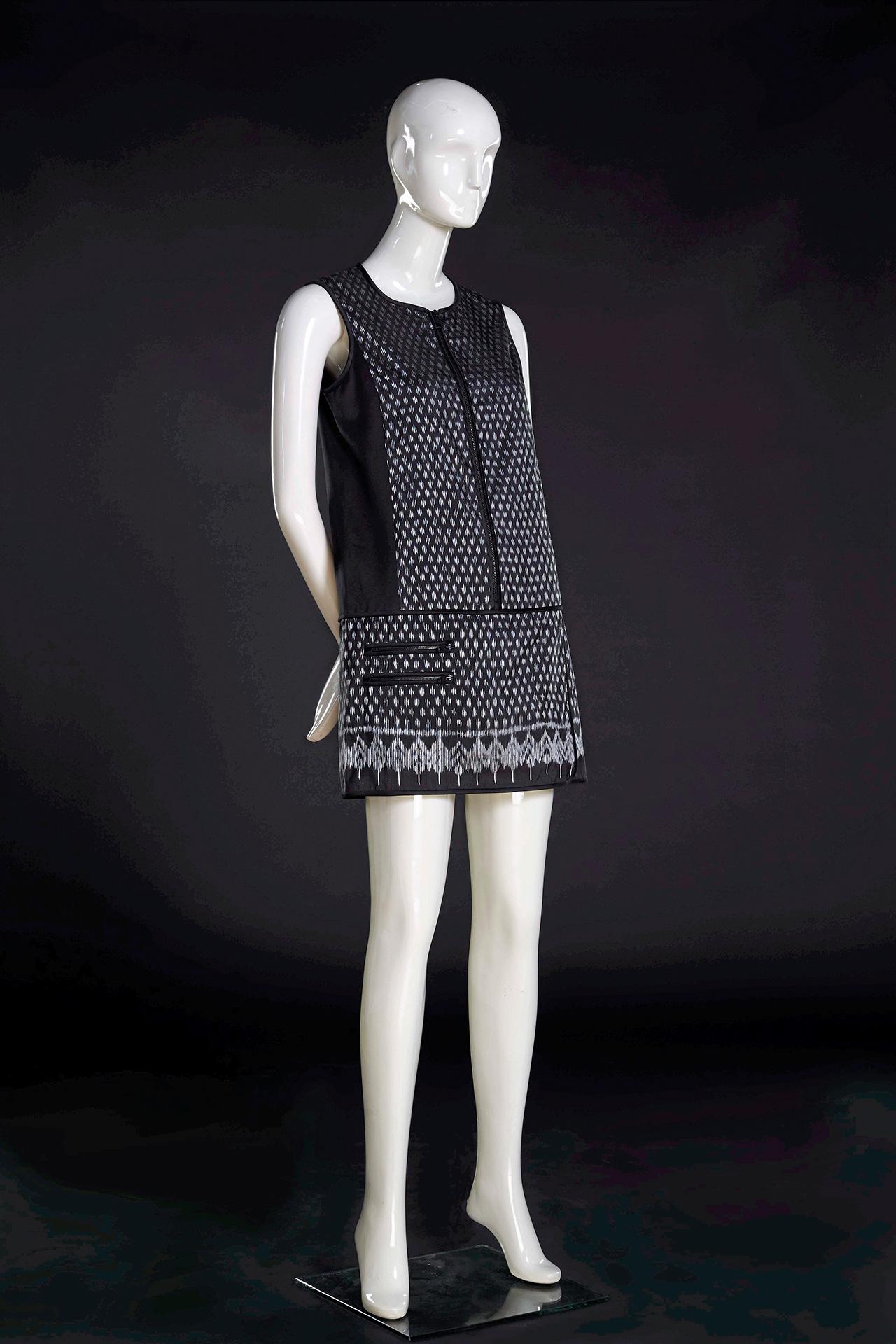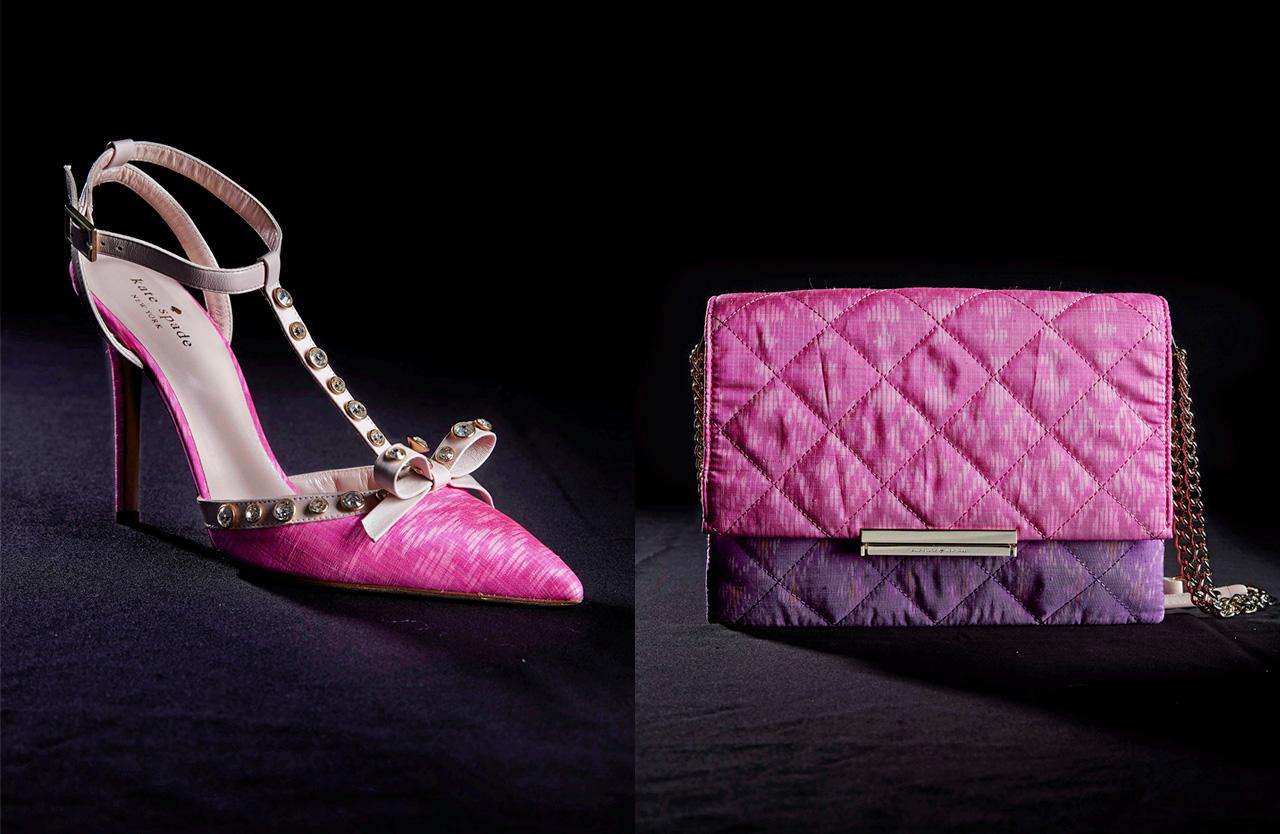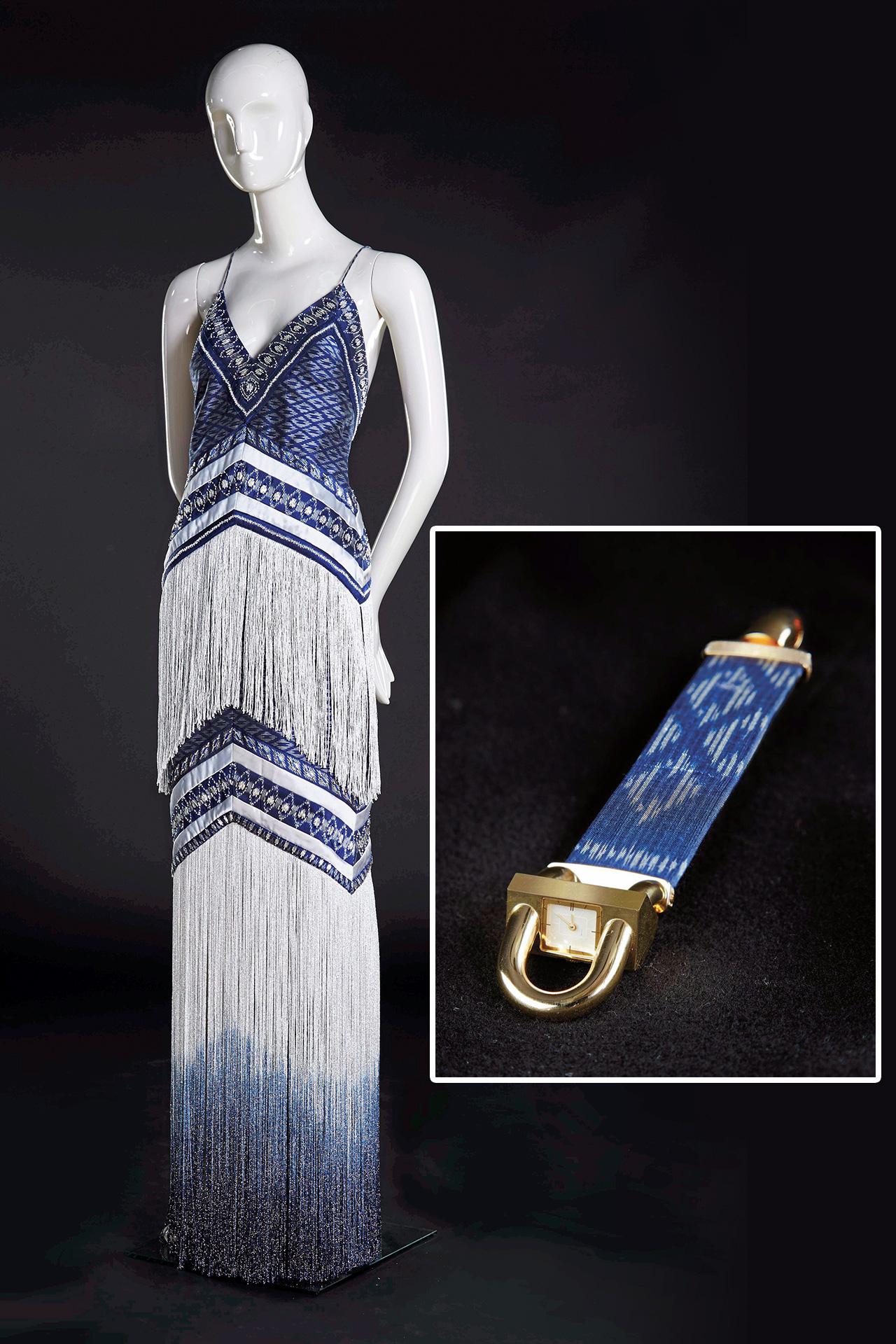 สำหรับชิ้นงานมาสเตอร์พีซ มีอาทิ Charlotte Olympia เป็น กระเป๋าคลัตช์อะคริลิกใสตกแต่งโลหะ ชุบทอง ประดับคริสตัลพร้อมซองซิปผ้าไหมมัดหมี่ คู่กับรองเท้าส้นสูงหัวมนเสริมพื้น ใช้ผ้าไหมมัดหมี่ตัดต่อหนังเม ทัลลิก, Vionnet จั๊มป์สูทขายาว ทรงกระบอกแขนกุด ตัดจากผ้าไหมมัดหมี่จับเดรปที่ช่วงอก ตัดต่อผ้าไหมซาติน ตกแต่ง สายคาดไหล่หนังย้อมสี, Jimmy Choo กระเป๋าคลัตช์ทรงสี่เหลี่ยม รุ่น BOX ผ้าไหมมัดหมี่ตัดต่อสองลายจับเดรป ด้านข้างตกแต่งคริสตัล, Nina Ricci ก็เป็นกระเป๋าคลัตช์ทรงสี่เหลี่ยม ผ้าไหมมัดหมี่ตัดต่อลาย ด้านข้างตัดต่อหนังงู ตกแต่งโซ่ด้วยโลหะชุบทอง, Roger Vivier กระเป๋าคลัตช์ทรงสี่เหลี่ยม รุ่น Pilgrim Clutch ผ้าไหมมัดหมี่ตัดต่อลายเป็นรูปดอกไม้ตกแต่งคริสตัล, Bi yan เป็นชุดกระโปรงสั้นคอกลมทรงบานแขนสามส่วน ตัดเย็บด้วยผ้าไหมมัดหมี่ปักลายดอกไม้ ตกแต่งแผ่นโลหะชุบทอง เลื่อม และลูกปัดบริเวณไหล่และรอบคอ, Tod’s กระเป๋าสะพายรุ่น WAVE มีทั้งใบเล็กและใบใหญ่ หนังแนป้าซิปหน้า ตัดต่อผ้าไหมมัดหมี่ ด้านในบุหนังวัว ฯลฯ
