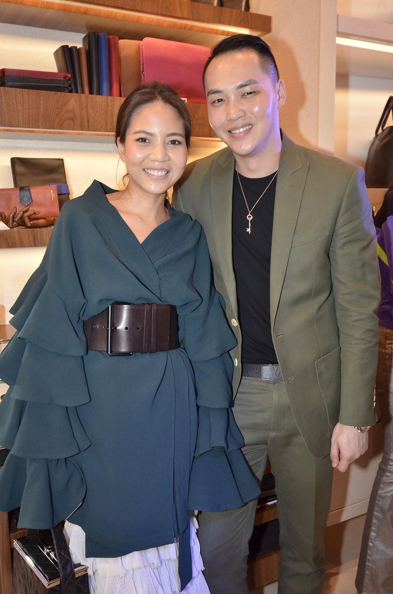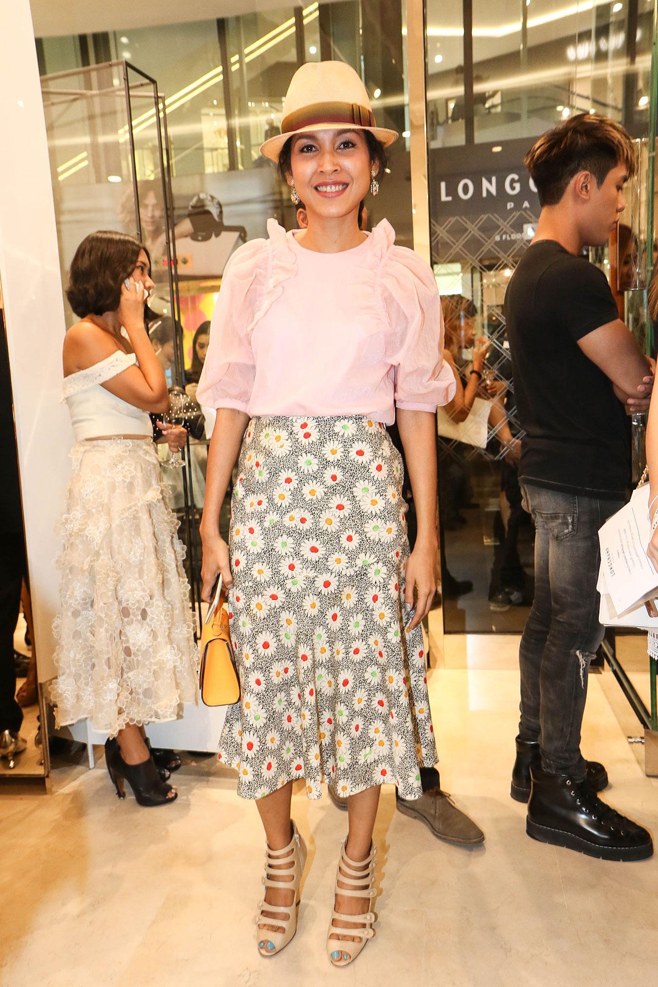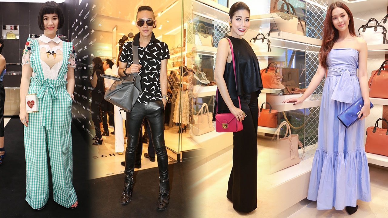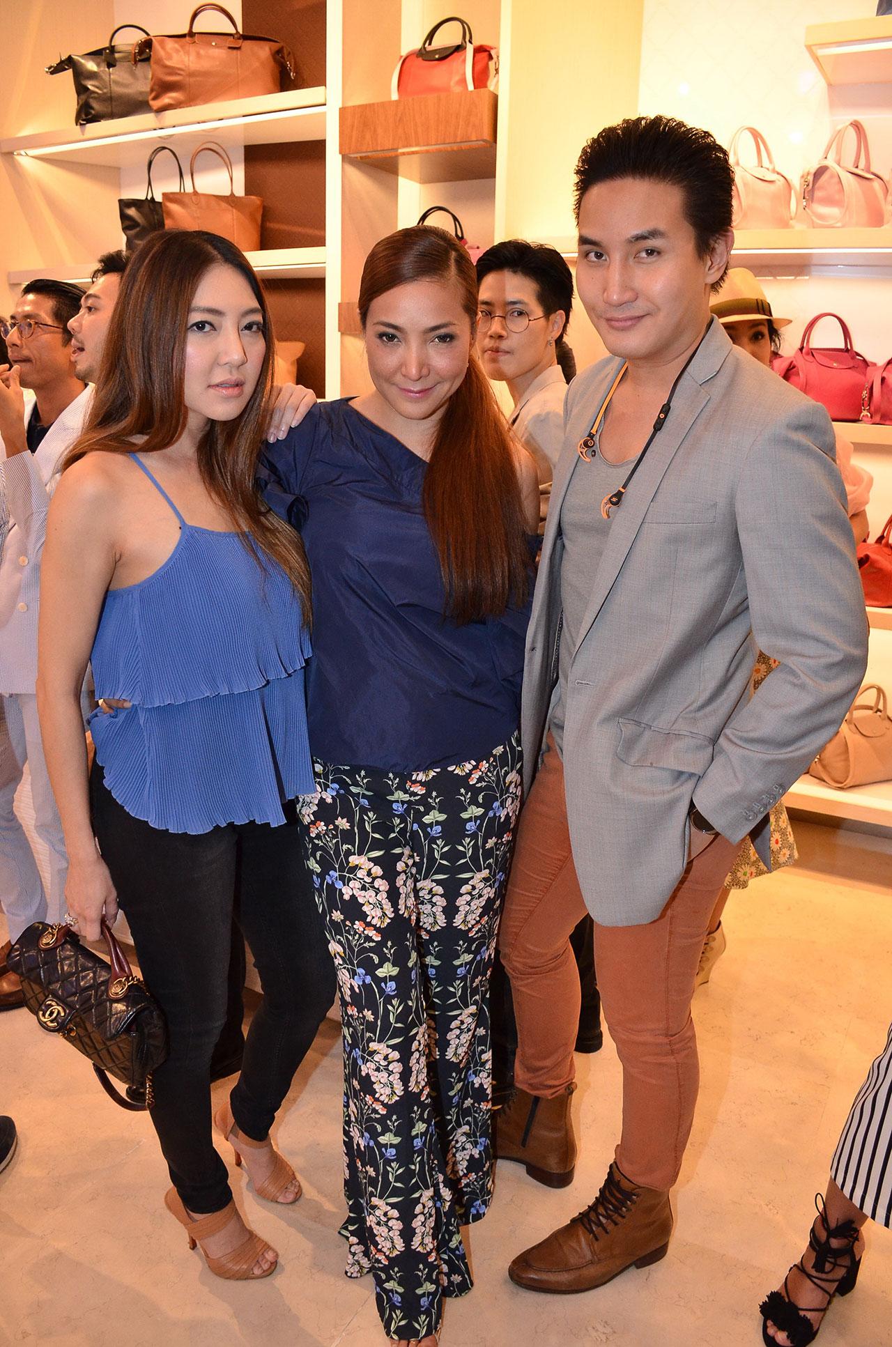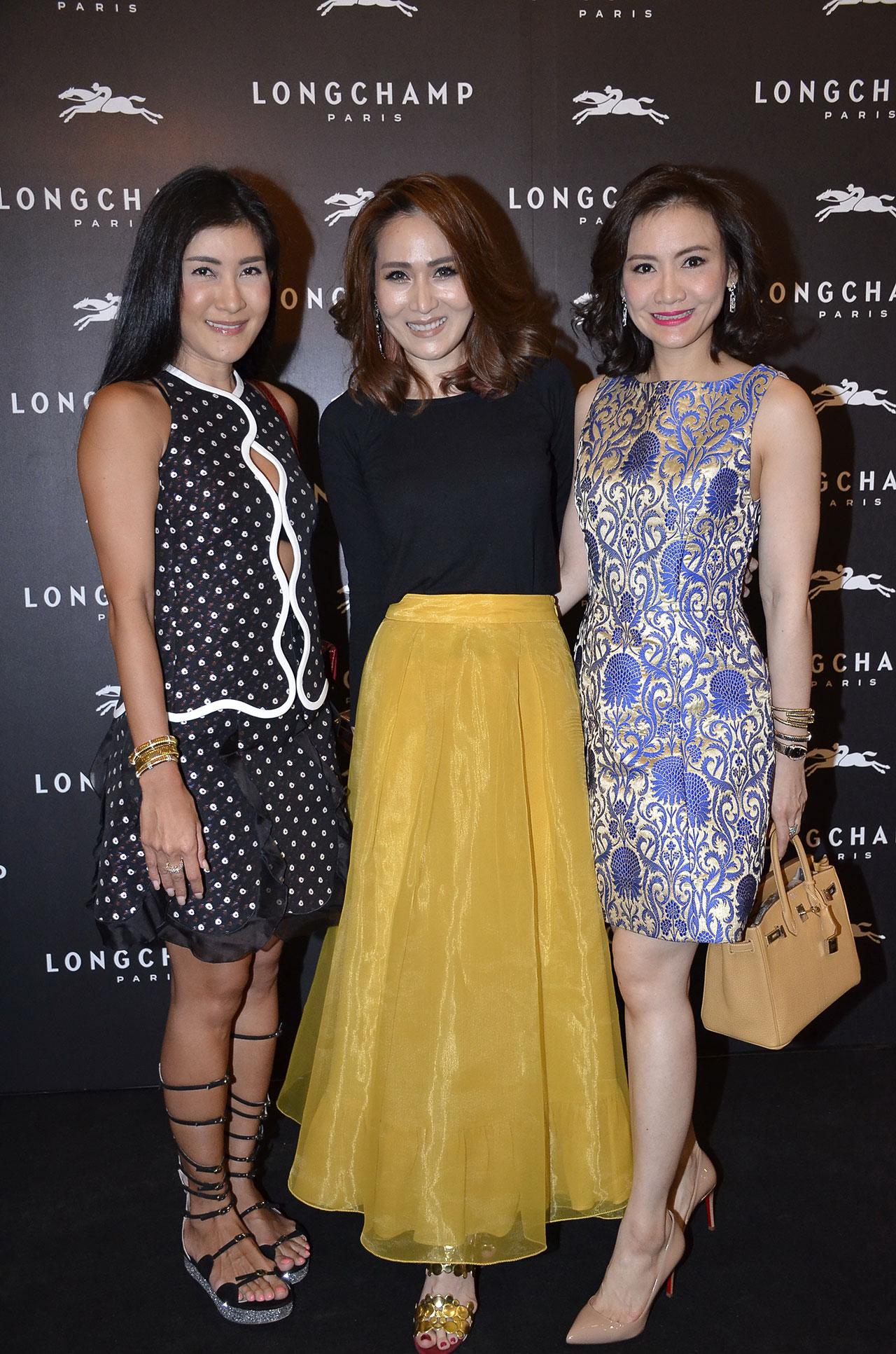 ประเดิมที่สองคนแรกซึ่งหากจะไม่พูดถึงก็คงไม่ได้ เพราะนี่คือสองผู้บริหารใหญ่ 'พีพี กรุ๊ป' ที่นำเข้าแบรนด์ลองฌอมป์เข้ามาในไทย โดย 'ปิ่น-สุวดี พึ่งบุญพระ' เซเลบฯ สาวไฮโซมาในลุคเรียบหรูสบายๆ กับเสื้อตัวโคร่ง และกางเกงแบบสี่ส่วน แมตช์เข้ากับรองเท้าส้นสูงสีดำ และกำไลข้อมือดีไซน์เก๋