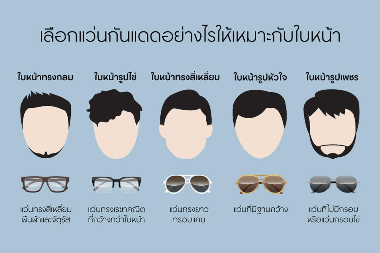 ไม่ว่าจะหน้าหนาว หน้าฝน หรือหน้า (โคตร) ร้อน ดวงอาทิตย์ก็ยังสาดแสงแรงกล้ามาที่ประเทศไทยทุกฤดู แว่นกันแดดจึงเป็นไอเท็มติดตัวที่จะช่วยปกป้องดวงตาจากแสงแดดและยังช่วยเพิ่มความเท่ให้คุณดูมีสไตล์อีกด้วย แต่แว่นกันแดดมีให้เลือกมากมายหลายทรง เราจะมาบอกเคล็ดลับคุณว่าจะเลือกแว่นกันแดดอย่างไรให้เหมาะสมกับใบหน้า