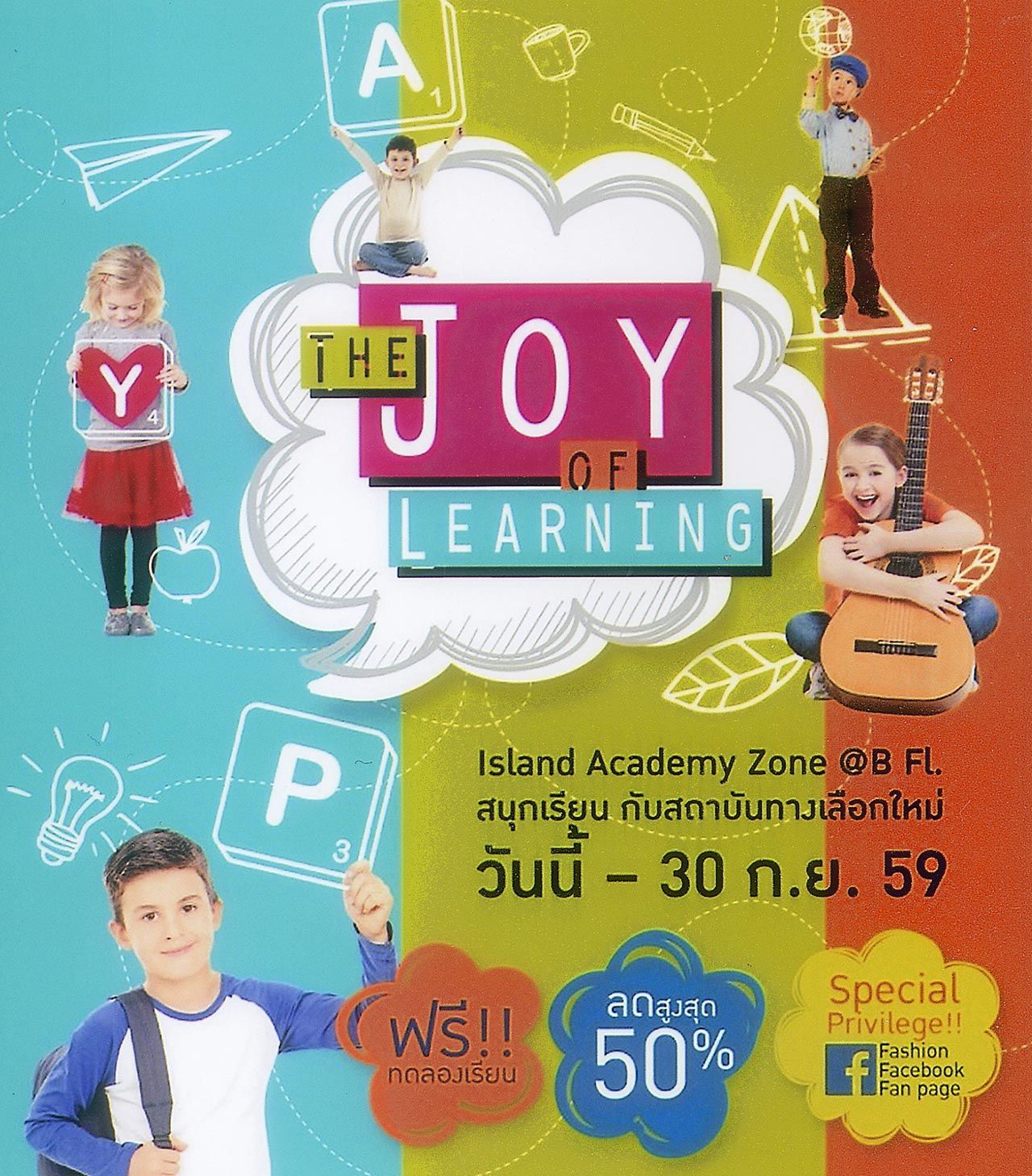 Island Academy อาณาจักรแห่งการเรียนรู้สำหรับเด็ก ศูนย์การค้าแฟชั่น ไอส์แลนด์ จับมือสถาบันชั้นนำ จัดโปรโมชั่น 3 ต่อ ต่อที่ 1 ลุ้นรับ Voucher คอร์สทดลองเรียนฟรี 1 เดือน ต่อที่ 2 ส่วนลดโปรโมชั่นมากกว่า 50% ต่อที่ 3 Voucher สำหรับกิจกรรมสื่อออนไลน์ และพบกับกิจกรรมต่างๆได้ถึง 30 ก.ย. ...