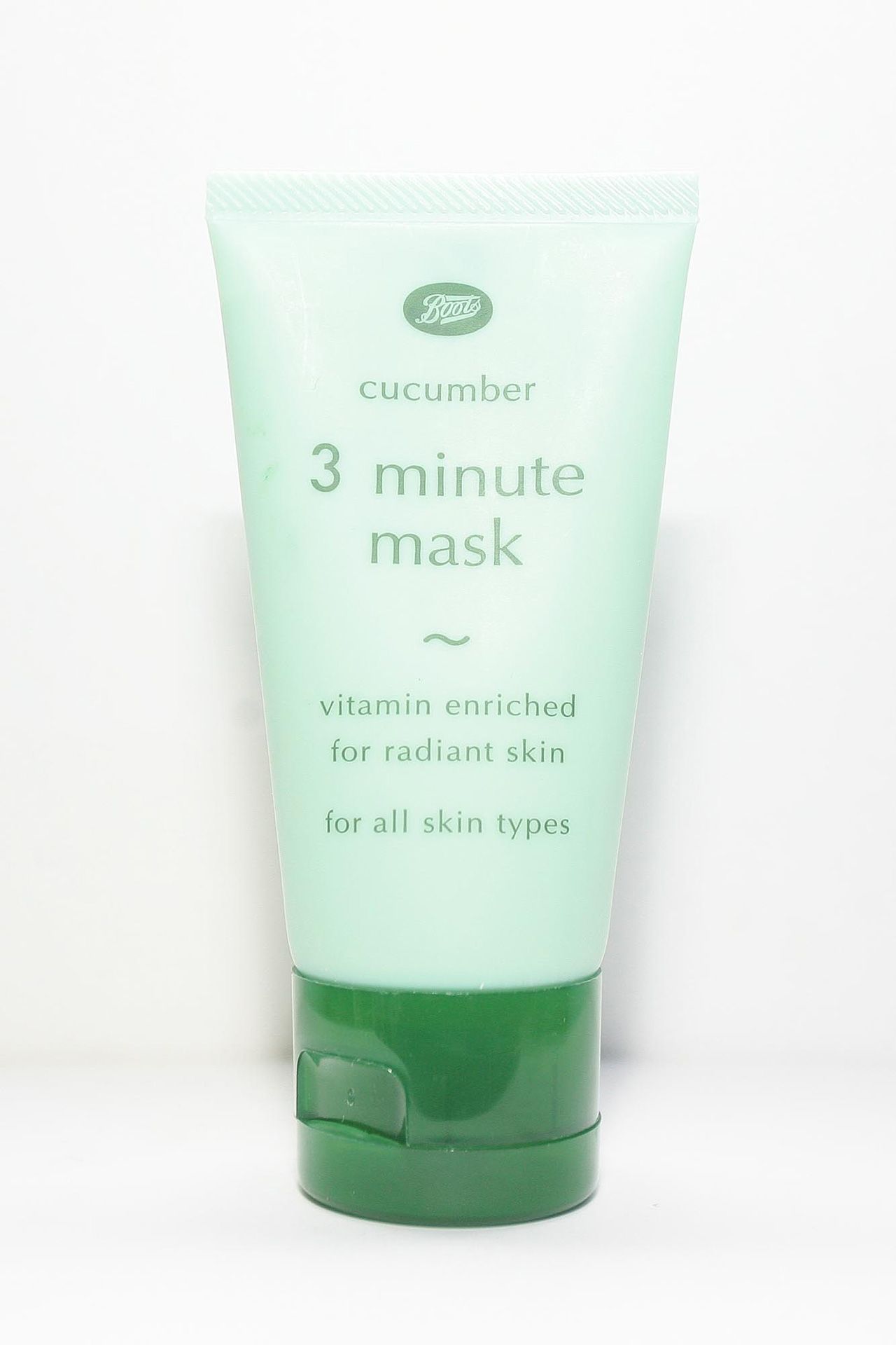 มาถึงไอเทมตัวใหม่ที่เราเพิ่งลองใช้ไม่นาน นั่นคือ Boots Cucumber 3 Minute Mask ทางแบรนด์เขาเคลมว่า เป็นผลิตภัณฑ์พอกผิวหน้า เนื้อโคลน เหมาะกับผิวมัน อุดมด้วยสารสกัดจากแตงกวาช่วยในการทำความสะอาดผิวหน้า ใช้ทำความสะอาดและกระชับผิว ด้วยเนื้อเคโอลินช่วยขจัดน้ำมันส่วนเกิน และสิ่งสกปรกออกจากรูขุมขน