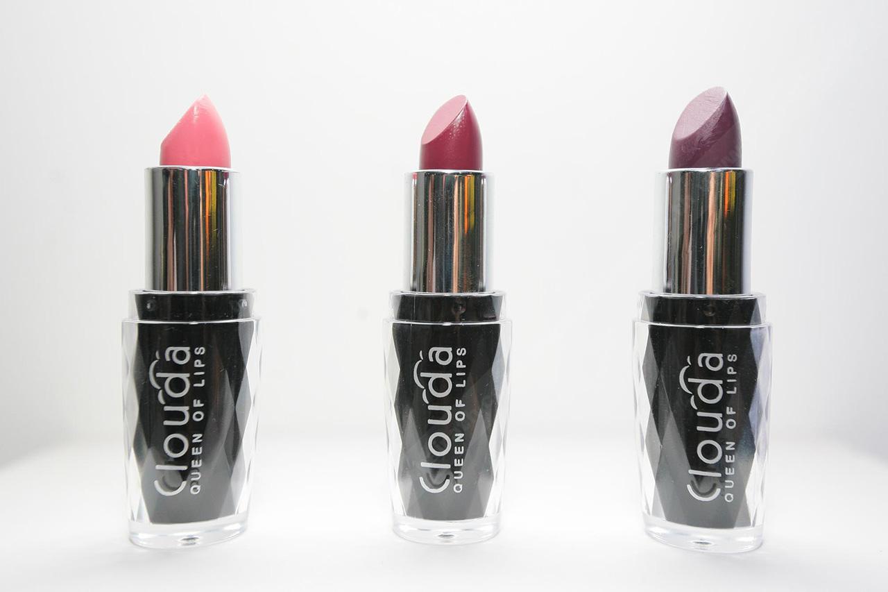 เริ่มจาก Clouda Queen of Lips เป็นลิปสติกเนื้อ Sheer เนียน นุ่ม ให้ความชุ่มฉ่ำ ไม่แห้งเหมือนลิปเนื้อแมต เม็ดสีแน่น ติดทน ให้สีสวยคมชัด ช่วยให้ริมฝีปากดูเรียว ปกปิดความหมองคล้ำ แก้ปัญหาริมฝีปากเป็นร่องและขุย ช่วยให้ปากชุ่มชื่น เนียน อิ่มเอิบ มีทั้งหมด 6 สี เขามีโปรโมชั่นในช่วงแนะนำสินค้า สนนราคาเพียง 249 บาท จากราคาเต็ม 499 บาท
