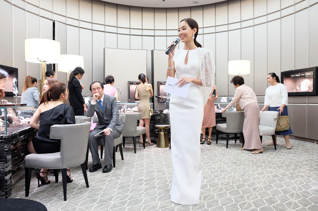 เซเลบริตี้วัยรุ่นที่ชื่นชอบแฟชั่นเป็นชีวิตจิตใจ งานนี้เธอจับการแต่งตัวแบบไฮเอนด์ คว้าเสื้อสีดำกำมะหยี่ผ่าหน้า แมตช์กับกระโปรงเอวสูงสีขาวที่มีลูกเล่นด้านข้างแบบ 3 มิติ (ให้อารมณ์เหมือนเธอกำลังโชว์ผิวอยู่) หยิบกระเป๋าคลัตช์ และกำไลแซมเพชรมาเสริมลุคให้ดูหรู แฟชั่นนิดๆ ตบท้ายด้วยแหวนเพชรดีไซน์สวย และสร้อยคอเพชรวิบวับกระทบแสงแฟลชเข้ากับธีมงาน