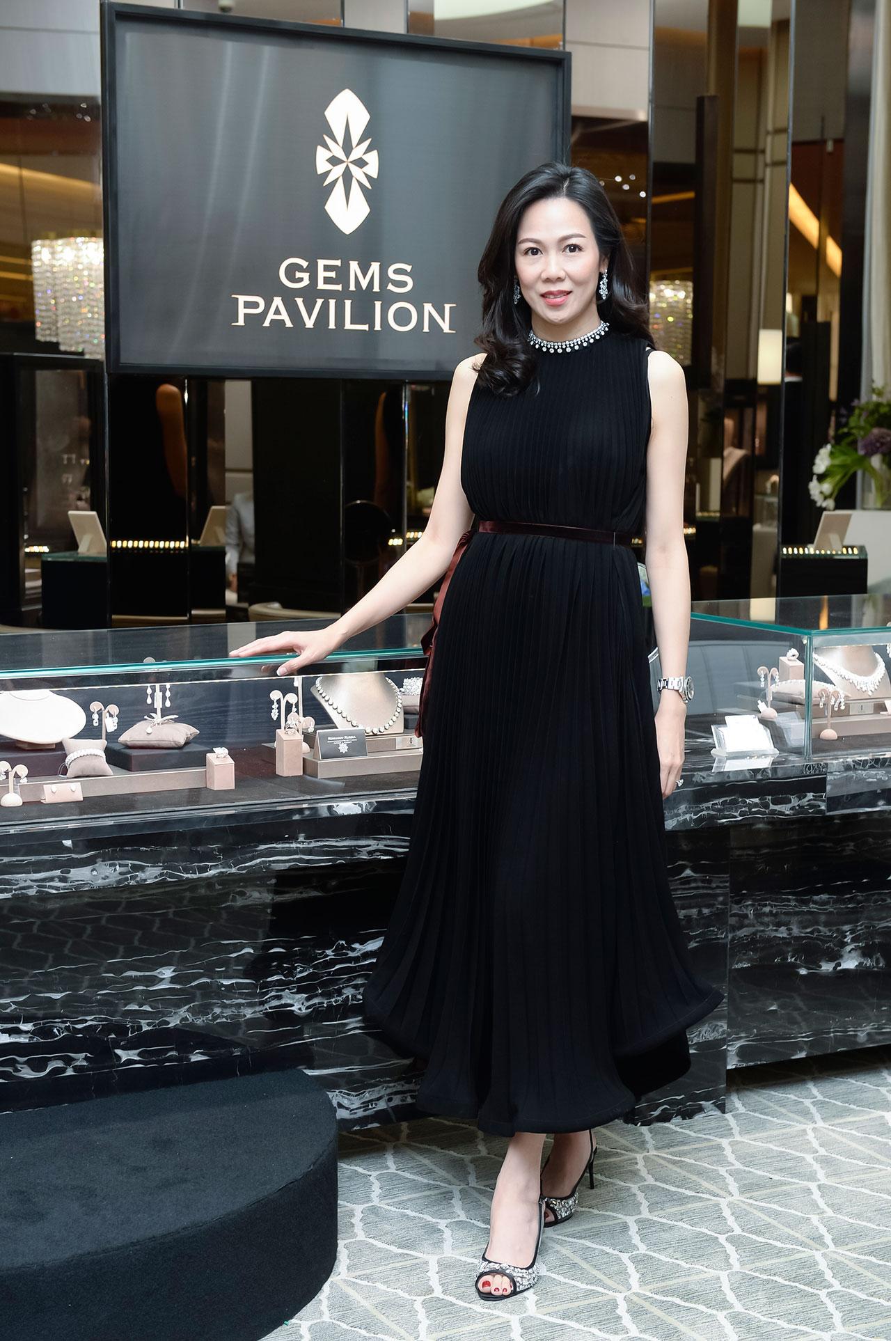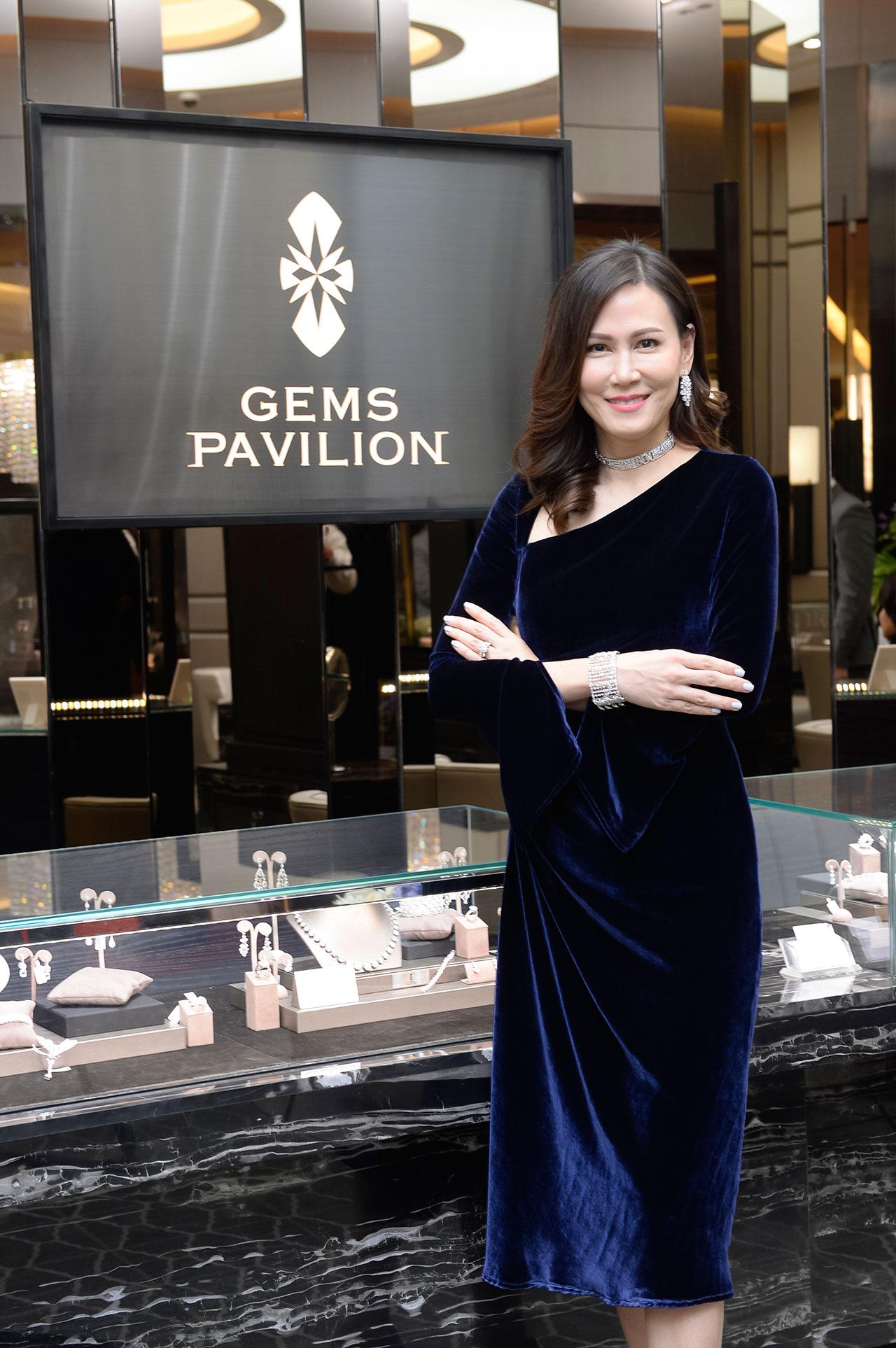 ประเดิมคนแรก เซเลบฯ สาวสวย รวยเสน่ห์ Managing Director and Creative Director แห่งเจมส์ พาวิลเลี่ยน เชื่อแน่ว่า ทุกครั้งที่เธอปรากฏตัว หนุ่มน้อยหนุ่มใหญ่จะต้องร้องว้าว มองตาเป็นมัน ด้วยความเซ็กซี่เรียบหรูชวนสะกดสายตา ยิ่งงานนี้เธอมาในชุดเดรสกำมะหยี่สีน้ำเงิน ดีไซน์สุดเก๋เว้าหน้าลึก แมตช์กับแอคเซสเซอรี่เพชรยกเซต ไม่ว่าจะเป็น แหวนเพชรเม็ดงาม กำไลข้อมือวิบวับ สร้อยคอ และต่างหูเป็นประกายยามกระทบแสงแฟลช ก็ทำให้เธอโดดเด่นไม่มีใครเทียบ !