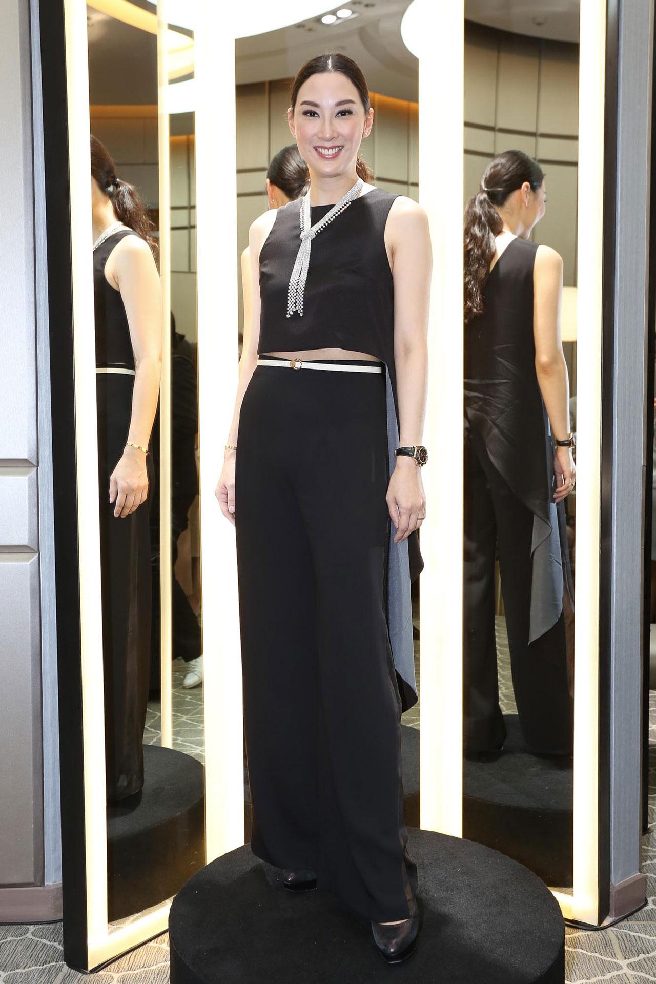 อีกหนึ่งเซเลบฯ ผู้อำนวยการฝ่ายต่างประเทศ แห่งเจมส์ พาวิลเลี่ยน งานนี้เธอมาในลุคสวยสง่าด้วยเดรสสีดำยาวแขนกุด พร้อมหยิบเข็มขัดสีดำมาเพิ่มลูกเล่นให้ดูเก๋ไก๋ ไม่เพียงเท่านั้นยังยกระดับความแพงด้วยเครื่องประดับเพชร และส้นสูงระยิบระยับเด่นสะดุดตา