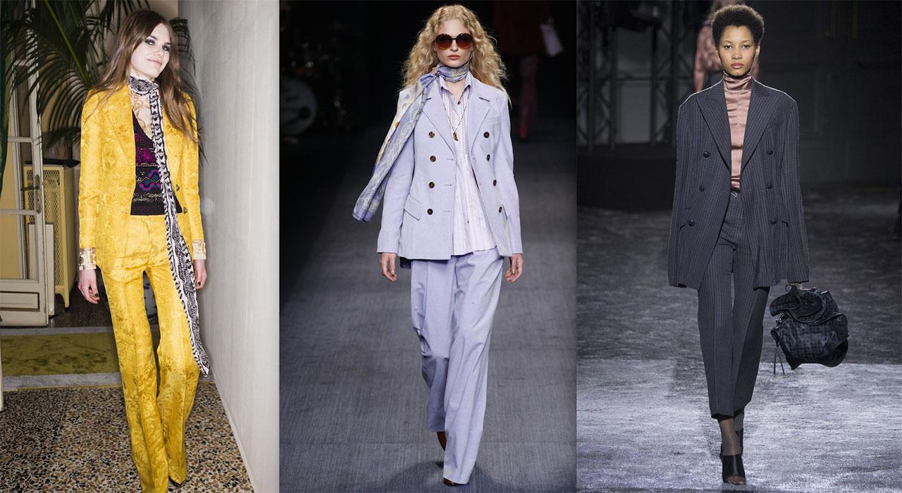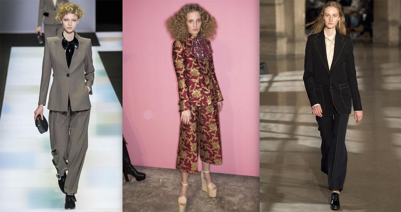 ในฤดูกาลนี้มีตัวเลือกละลานตา เป็นต้นว่าที่ Balenciaga ลายตารางอันเก่าแก่แผ่เต็มแจ็กเกตสูทกระดุมสองแถวไหล่กว้างเข้าเอวกิ่ว จับคู่กับกางเกงเทเลอร์ขาตรง ส่วนที่ Lemaire แบรนด์หรูของ Christophe Lemaire อดีตครีเอทีฟไดเร็กเตอร์ของ Hermès สร้างสรรค์ชุดสูทกางเกงซึ่งขยายสัดส่วนให้ยาวขึ้น ส่วนกระเป๋าเสื้อ ปก และริมขอบผ้า โชว์ฝีเข็มด้ายสีเหลืองแบบที่พบได้ในกางเกงยีนส์ “เพื่อเพิ่มความรู้สึกให้สูทเป็นชิ้นที่ใส่ในชีวิตประจำวันได้มากขึ้น ใส่สบาย เบา และเคลื่อนไหวได้สะดวก ผมชอบอะไรที่ดูโปร่งและไม่เป็นทางการมากนัก” คริสตอฟกล่าว