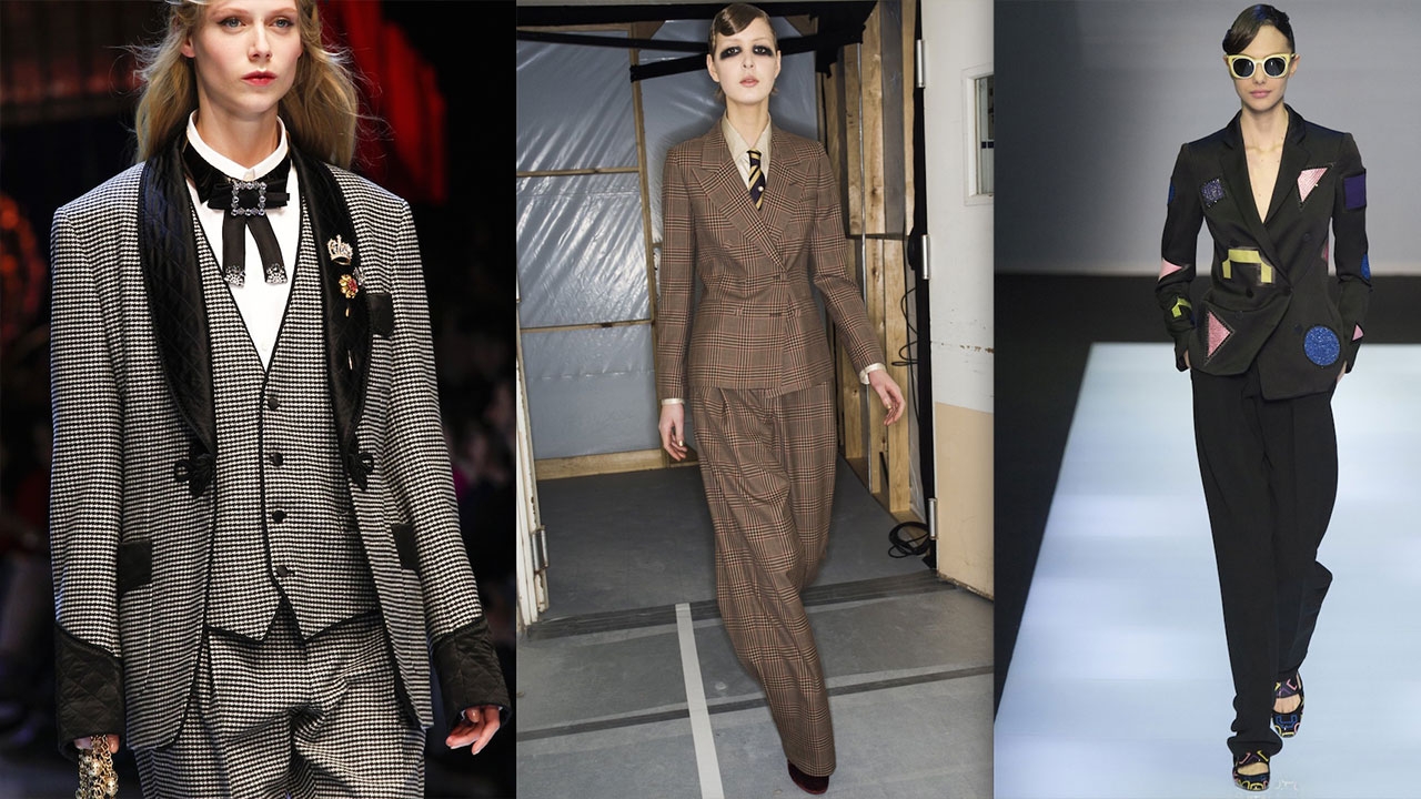 แล้วทรงสูทแบบไหนที่เหมาะกับรูปร่างแต่ละแบบ กางเกงเข้ารูปรัดข้อเท้าแบบไม่ต้องพับชาย เหมาะกับคนตัวเล็กที่ใส่เสื้อแขนยาวเอ็กซ์ตร้า (หรือจะเลือกปลายแขนเสื้อจรดข้อมือพอดีก็ได้) ส่วนแจ็กเกตทรงหลวมนิดๆ เหมาะกับคนที่มีทรวดทรงองค์เอว ซึ่งแนะนำว่าควรหลีกเลี่ยงดีเทลที่เน้นให้ดูมีสัดส่วนยิ่งกว่าเดิม (เช่น สูทกระดุมสองแถว) และควรเลือกเนื้อผ้าที่ค่อนข้างแข็งคงตัวมากกว่าผ้าที่แนบเนียนไปกับผิว เบลเซอร์เข้าช่วงเอวเบาๆ เพอร์เฟกต์สุดสำหรับคนมีหุ่น ในขณะที่กางเกงทรงตรงขายาวพิเศษเหมาะกับสาวอวบและสาวหุ่นลูกแพร์ ส่วนลายทางจะช่วยให้รูปร่างทุกแบบดูเพรียวขึ้น เสริมอีกนิดว่าลายทางที่ไม่เข้มชัดจัดๆ จะช่วยให้ดูโมเดิร์นขึ้น
