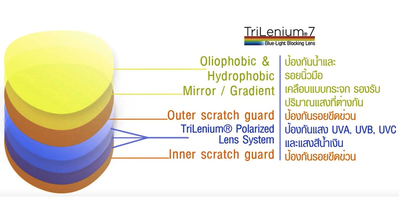 • ชั้น Tri-Active Polarize Lens ป้องกันรังสีจากดวงอาทิตย์และสะท้อนแสงกลับ (เลนส์ชั้นที่ 2)