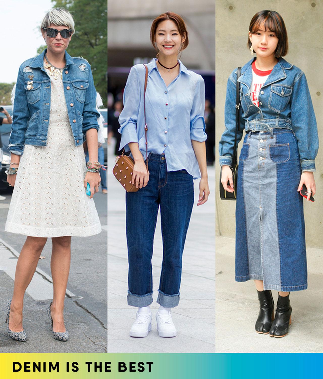3. กระโปรงยีนส์ + แจ็กเกตยีนส์ = เขาเรียกว่าดับเบิลยีนส์ เป็นกระโปรงยีนส์ตัวยาว จับคู่กับเสื้อยืดธรรมดา แต่เพิ่มดีเทลเก๋ๆ เท่ๆ ด้วยเสื้อแจ็กเกตยีนส์เข้าไปอีกที ห่างไกลความโป๊ มีแต่ความเก๋