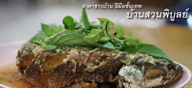 เย็นวันก่อนนึกอยากกินฝีมือของลุงประสิทธิ์ เจ้าของร้าน “บ้านสวนพิบูลย์” อดใจไม่ไหวเลยจะต้องโดนกันหน่อย ร้านนี้สมัยก่อนไม่เห็นชื่อร้านพวกผมจะเรียกว่าร้าน “โนเนม” เป็นอันว่ารู้กัน มาดูประวัติพ่อครัวใหญ่กันหน่อย คุณลุง(ตอนนี้กว่า 60 แล้วแต่ยังฟิตอยู่เลย)เป็นพนักงานบริษัทมาก่อน เป็นคนชอบเสวนา กิน ดื่ม ฝีมือในการทำกับข้าวไม่เป็นสองรองใครแน่ๆ เคยเป็นลูกมือคุณแม่ท่านมาตั้งแต่เด็ก มาถึงทุกวันนี้เปิดบ้านทำร้านอาหารแบบเอามัน คนในหมู่บ้านพิบูลย์ที่ไม่ชอบทำกับข้าวก็อาศัยบ้านนี้ทำกับข้าวในกินทุกเมื่อเชื่อวันละคูณ ในหมู่บ้านยังมีบ้านเช่น อพาร์ทเม้นต์ ที่น้องๆ ชาว สจพ. เช่าอยู่เพราะใกล้มหาวิทยาลัย อาศัยเป็นอู่ข้าวอู่น้ำ จนถึงทุกวันนี้
