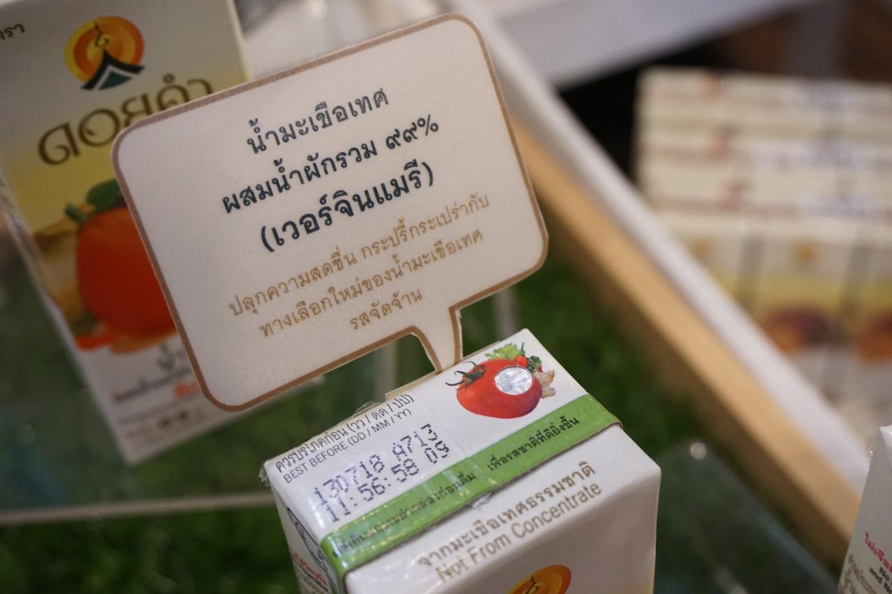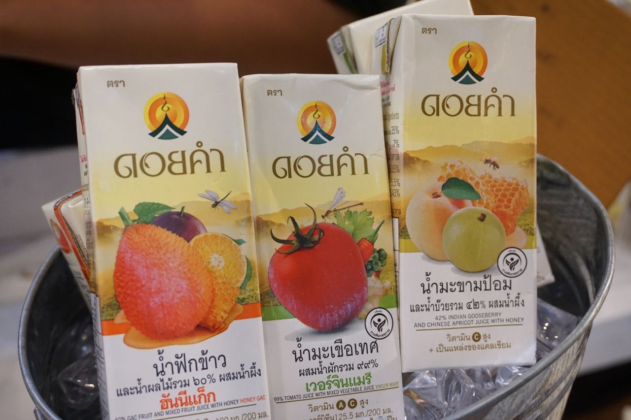ส่วนน้ำผลไม้ก็มีรสชาติใหม่ออกมาเช่นกัน แต่เดิมจะมีแค่น้ำลำไย เก๊กฮวย น้ำสตรอเบอร์รี่ น้ำเห็ดหลินจือ แต่ที่ฮิตสุดๆ ในช่วง 1-2 ปีที่ผ่านมา คือ น้ำมะเขือเทศ มะเขือเทศลดโซเดียม มะเขือเทศค็อกเทล ประชาชนคนไทยให้การตอบรับที่ดีมากๆ มาปีนี้ โครงการหลวงเพิ่มรสชาติใหม่ เช่น น้ำฟักข้าว น้ำมะเขือเทศเวอร์จินแม่รี่ และน้ำมะขามป้อมผสมน้ำผึ้ง