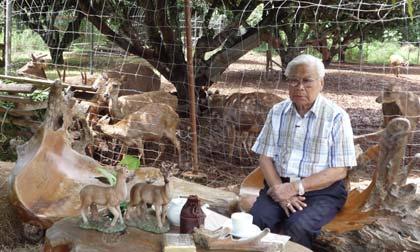 คุณบุณยวัฒน์ เหลืองสุวรรณ กับกวางข้างร้านสวนกวาง.