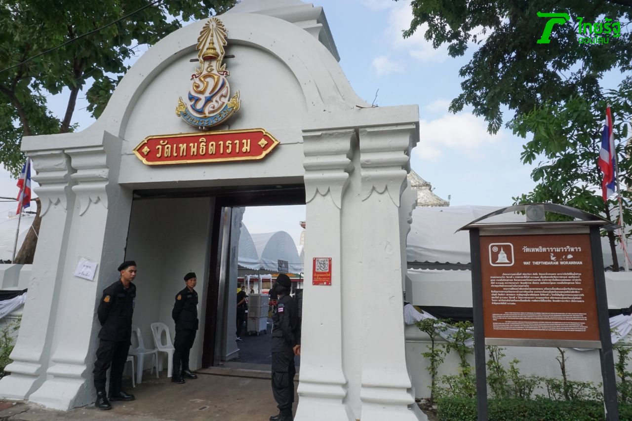 เดินต่อมาตามถนนมหาชัย บริเวณโลหะปราสาท ตรงไปเรื่อยๆ จะเจอกับ วัดเทพธิดารามวรวิหาร จุดนี้เป็นจุดแจกอาหารจุดที่ 2 เรียกว่าเป็นโรงเลี้ยงพระราชทานขนาดใหญ่ที่สุดในงาน เพราะที่นี่รวมครัวปรุงอาหารไว้ถึง 5 ครัว
