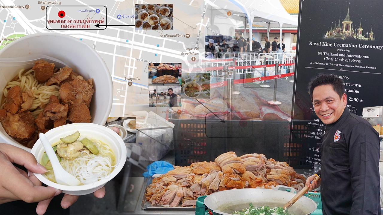ไทยรัฐออนไลน์ ลงพื้นที่สำรวจจุดแจกอาหารฟรีสำหรับแขกของพระราชา ที่เดินทางมาร่วมงานพระราชพิธีถวายพระเพลิงพระบรมศพในหลวง รัชกาลที่ 9 กันอย่างเนืองแน่น เท่าที่เดินสำรวจมาเราทำแผนที่มาให้ดูกันง่ายๆ 4 จุด ดังนี้