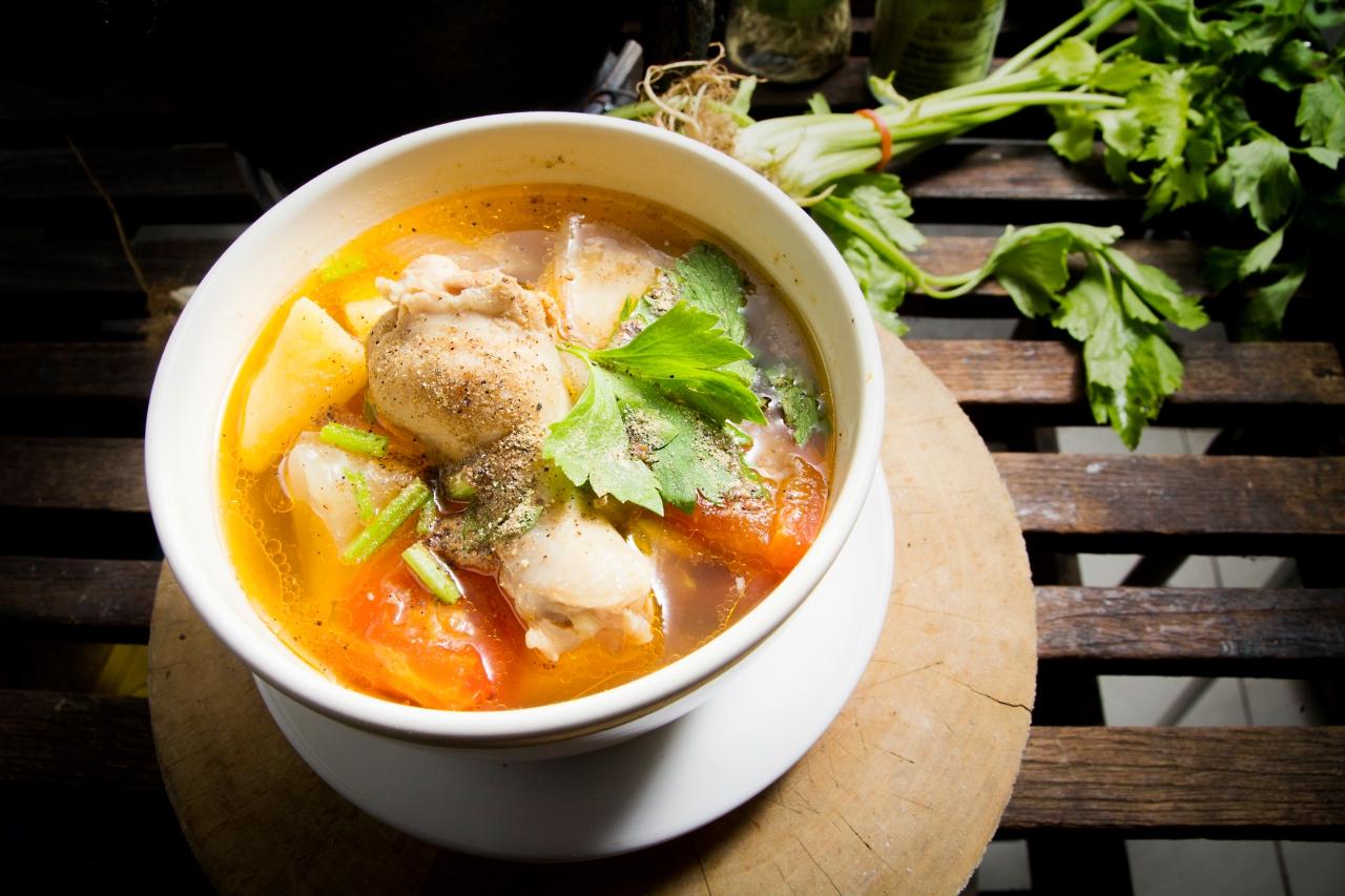 7. ตักซุปใส่ชาม ตกแต่งด้วยใบผักชี โรยพริกไทยป่นเล็กน้อย แค่นี้ก็เสร็จพร้อมเสิร์ฟ จะทานเปล่าๆ หรือทานกับข้าวสวยก็ได้ แต่ถ้าจะให้อร่อยยิ่งขึ้น แนะนำว่าให้ทำซุปวันนี้แล้วพักไว้ วันรุ่งขึ้นเอาออกมาอุ่นซำ้แล้วค่อยทาน จะยิ่งอร่อยเข้มข้นลงตัว