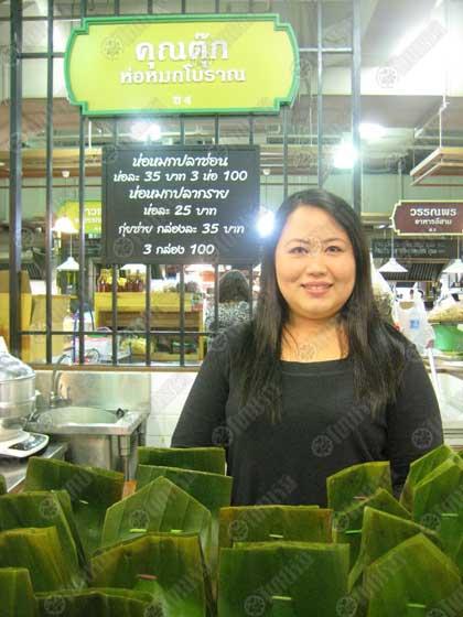 ร้าน "คุณตุ๊ก ห่อหมกโบราณ" ชื่อก็บอกแล้วว่าร้านนี้มีดีที่ห่อหมก คุณพี่ตุ๊กมีสองแบบสองปลาให้เลือกสรร คือ "ห่อหมกปลากราย" เนื้อเหนียว นุ่ม หนึบ หนับ และ "ห่อหมกปลาช่อนไร้ก้าง" หั่นเนื้อปลาใส่เป็นชิ้นเล็กๆ เวลาเคี้ยวแสนจะนุ่มละมุน ละไม สองแบบสองรสชาติ เลือกได้ตามแต่รสนิยม