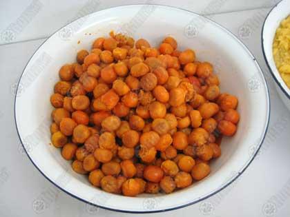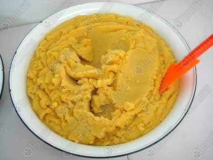 นอกจากตัวแป้งที่ต้องลงแรงหลายซับหลายซ้อน แล้ว "ไส้ถั่ว" ที่อัดแน่นอยู่ภายใน ยังต้องใช้ ความใส่ใจไม่น้อยไปกว่ากัน คุณพี่ใหญ่ใช้ถั่วเขียวกะเทาะเปลือกอย่างดี นำไปแช่น้ำประมาณ 4 ชั่วโมง แล้วนำไปต้มจนเปื่อย ปรุงรสด้วยน้ำตาลทราย เกลือ น้ำมันพืช กวนจนทุกอย่างรวมกันเป็นเนื้อเนียน แห้งได้ที่ เป็นอันเสร็จสิ้น พร้อมนำไปปั้นต่อไป