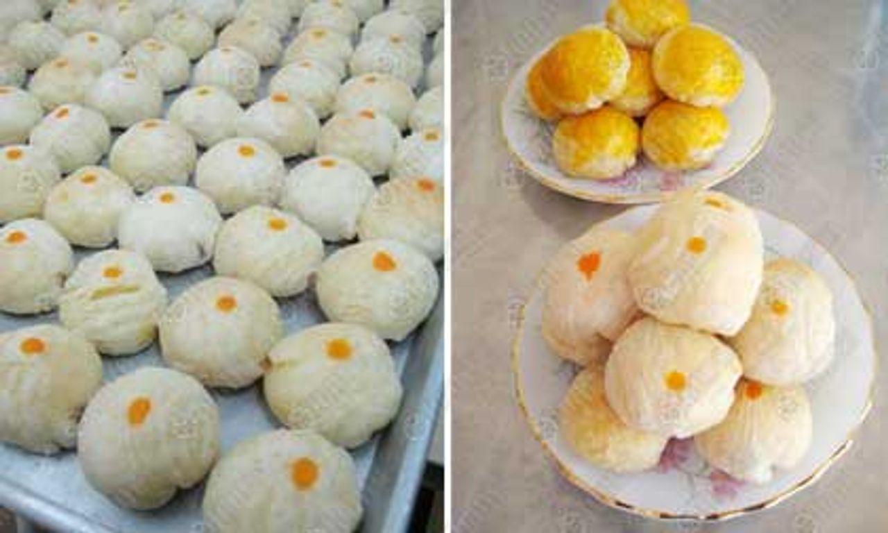 หลัง จากได้แป้งเนื้อนุ่ม ไส้ถั่วสุดหอม ไข่แดงเค็มแสนมันแล้ว นำทั้งสามส่วนมาปั้นเป็นก้อนกลมๆพอดีสองคำ แล้วทาด้วยไข่แดงก่อนจะนำเข้าเตาอบประมาณ 25 นาที นำออกมาทาไข่แดงเพิ่มอีกครั้ง แล้วอบต่ออีก 5 นาที พักให้เย็น แล้วนำไปอบเทียนเพิ่มความหอมให้ ลึกซึ้งดื่มด่ำถึงขีดสุด