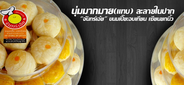 ขนมเปี๊ยะ "จันทร์ เอ๋ย" มีความโดดเด่นอยู่ที่ความนุ่ม สัมผัสได้ตั้งแต่ยังไม่เข้าปาก แค่ ใช้มือจับ หรือใช้ช้อนตัด สามารถรับรู้ได้ ทันที แผ่นแป้งบ๊าง...บาง แต่ก็ยังมีความเหนียวแทรกอยู่ในทุกอณูของความนุ่ม โซ้ยคู่กับน้ำชาร้อนๆ หรือกาแฟอุ่นๆ ก็เข้ากันได้เป็นอย่างดี เหมาะที่จะมีติดบ้านไว้เอาใจญาติผู้ใหญ่ หรือเอาใจตัวเองยามว่างจากงานบ้านในช่วงบ่าย อิ่มสบายๆได้ประโยชน์