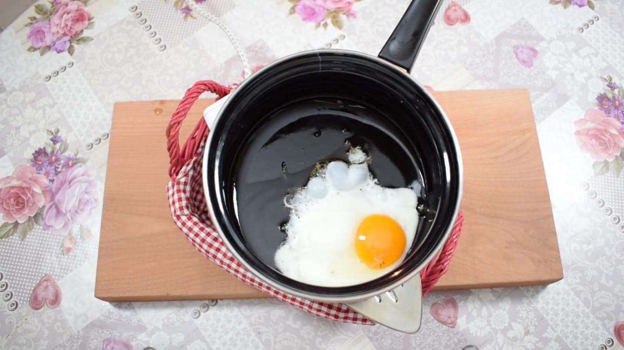 เสียบปลั๊กเตารีด ตั้งไฟไว้ความร้อนสูงสุด หาที่วางเตารีดให้มั่นคง หงายเตารีดไว้ เช่น วางในตะกร้าขนาดพอดีๆ หรือหากล่องเหล็กมาหนุนไว้ เอาน้ำมันพืชใส่กระทะเล็กน้อย แล้วนำมาวางบนเตารีด รอให้น้ำมันร้อน ตอกไข่ลงไปทอดได้เลย ได้เมนูไข่ดาวแบบไม่ต้องใช้เตาแก๊ส