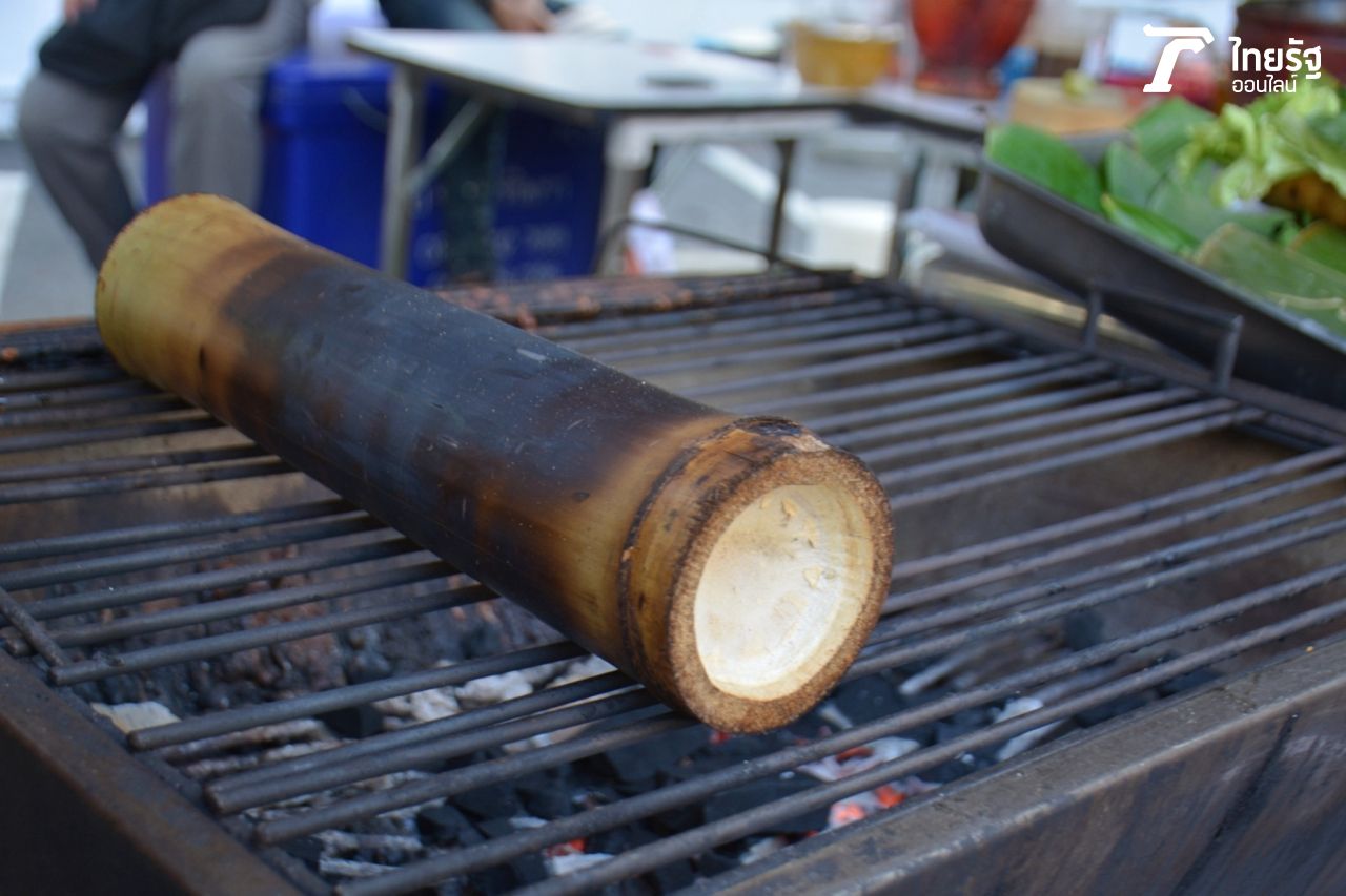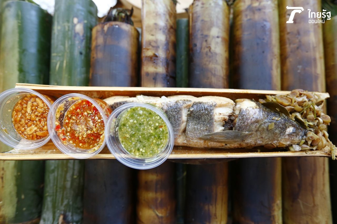 ร้านอาหารที่ม้วนปลาช่อนและนำไปเผาในกระบอกไม้ไผ่ ที่เผากันจนหอมอบอวลไปทั้งงาน อีกทั้งเวลารับประทานยังมีเสน่ห์กับเสียงการเคาะที่ดังป๊อกๆ ได้อรรถรสสุดๆ