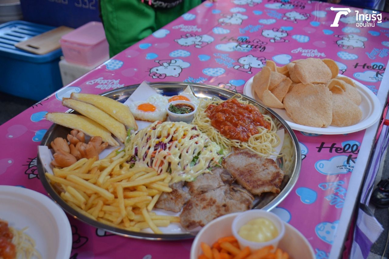 เดินทางมาถึงร้านสุดท้ายที่อยากจะแนะนำ กับร้านสเต็กถาดยักษ์ ร้านที่ขนทั้งเนื้อสเต็ก สปาเก็ตตี้ สลัด แฮม ไข่ดาว ขนมปังเนย เฟรนช์ฟราย ไส้กรอก ลงมารวมไว้ในถาดขนาดใหญ่ ใหญ่ขนาดที่กิน 3 คนก็อิ่ม ในส่วนของรสชาตินั้น ก็อร่อยไม่แพ้ความใหญ่ของถาดที่นำมาเสิร์ฟเลยค่ะคุณ!