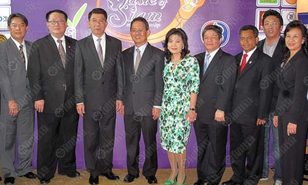 นายชัยวุฒิ บรรณวัฒน์ รมว.อุตสาหกรรม (ที่ 4 จากซ้าย) เป็นประธานเปิดโครงการ "รสมือไทยพร้อมปรุง" โดยมีเพ็ชร ชินบุตร, ดร.วิฑูรย์ สิมะโชคดี, รพีพรรณ เหลือง-อร่ามรัตน์ และพยุงศักดิ์ ชาติสุทธิผล เป็นแรงหนุนสำคัญ.
