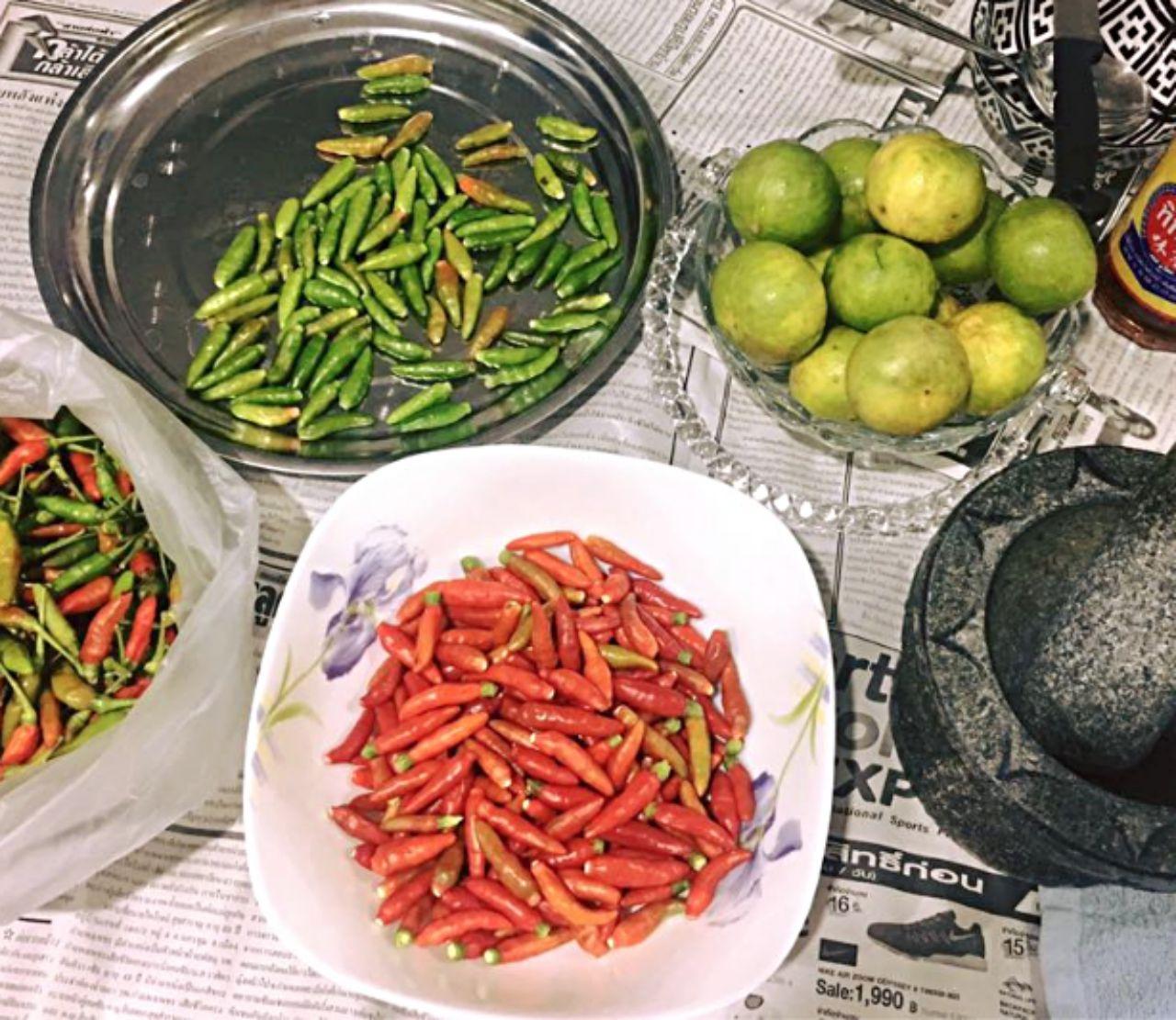 2. หลังจากนั้นรีบบีบมะนาวลงไป ทิ้งไว้นานพริกจะสีดำปี๋ อย่าบีบแรง คิดแต่จะเอาน้ำมันนะเออ เพราะสิ่งที่ได้...นั่นคือ ความขม