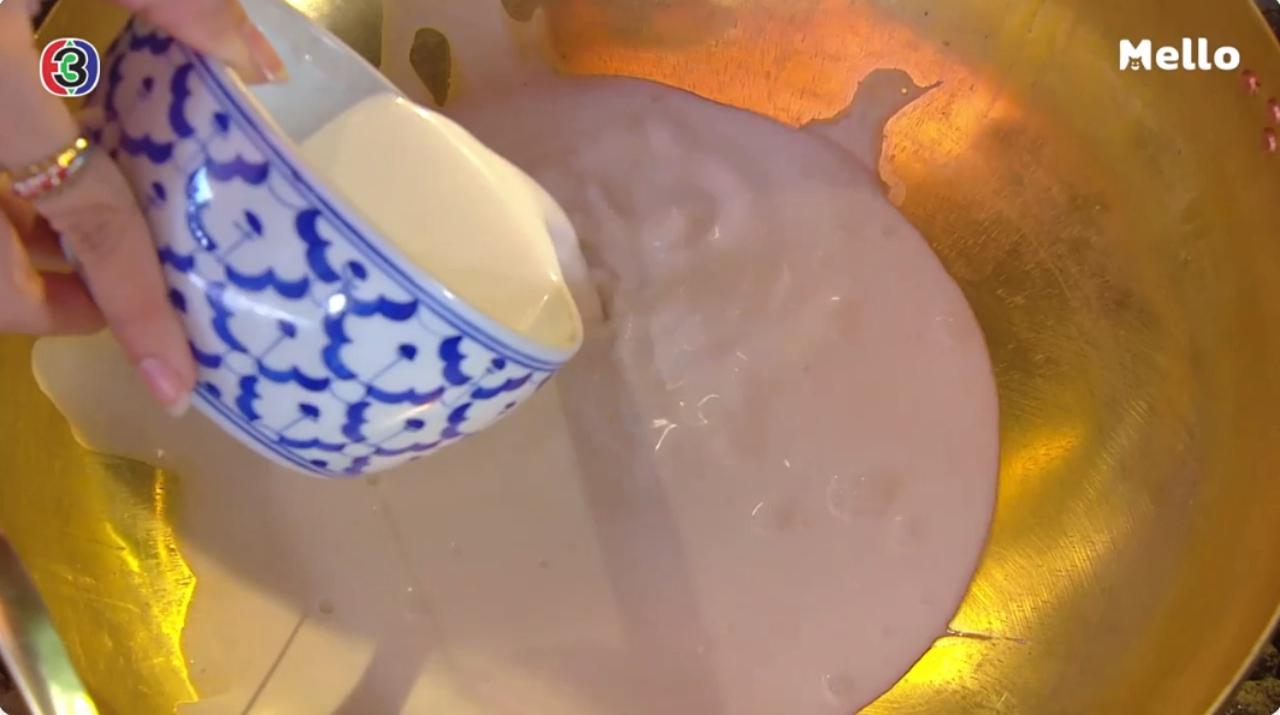 1. หัวกะทิ + หางกะทิ (ถ้าคั้นเองจะยิ่งดี เพราะได้ความหอมมัน สดใหม่)