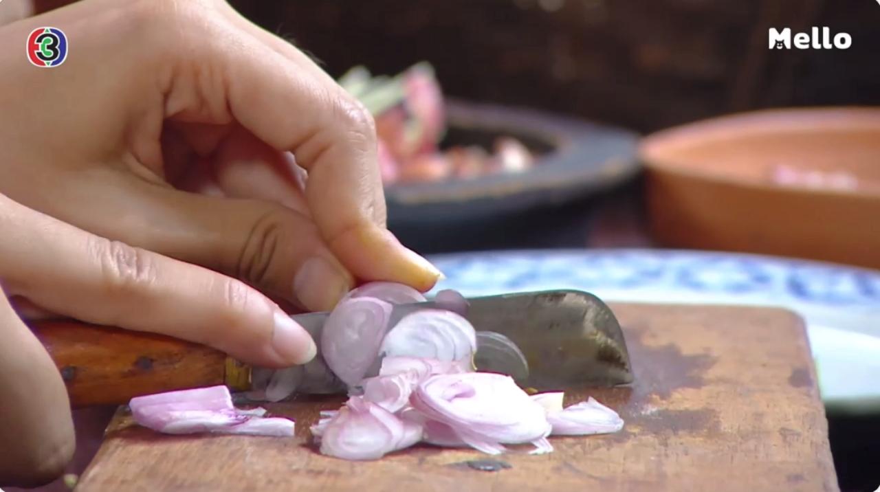4. หอมแดงซอย + หอมแดงทุบทั้งหัว