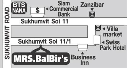 ร้านมิสซิสบาลบีร์ส ตั้งอยู่ในซอยสุขุมวิท 11 / 1 ถ้ามาด้วยรถไฟฟ้าลงสถานีอโศกแล้วเดินมาเข้าซอยมาแค่ไม่กี่ก้าวจะเห็นร้าน อยู่ทางขวามือ ร้านสีขาว มีผนังกระจกใส สะอาด น่านั่ง จำนวนโต๊ะอาจจะไม่มากนัก ควรโทร.จองล่วงหน้าเพื่อความสบายใจ ภายในมีห้องจัดเลี้ยงขนาด 20 คนไว้ให้บริการ ร้านเปิดตั้งแต่ 11 โมงเช้า ถึง 5 ทุ่ม ทุกวันอังคารถึงวันอาทิตย์ ปิดให้ พนักงานพักผ่อนวันจันทร์ ช่วงคริสต์มาสและปีใหม่ทางร้านมีโปรโมชั่นและเมนูพิเศษไว้ให้บริการ สอบถามและจองโต๊ะได้ที่เบอร์ 0-2651-0498