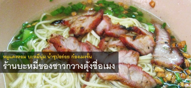 มาตลาดร่มหุบทั้งที ต้องแวะหม่ำของดีที่อยู่ เคียงบ่าเคียงไหล่กับคนแถวนี้มานานกว่า 60 ปี ร้านบะหมี่หมูแดง "ก๋องเมงจั้น" บะหมี่โฮมเมดขนานแท้ ตีเส้นกันหลังร้าน ส่งมาขายหน้าร้านสดๆใหม่ๆ การันตีไม่มีค้างคืน ร้านเก่าแก่ที่ยืนหยัดท้าแดดท้าฝนมาจนนับอายุไม่ถ้วน