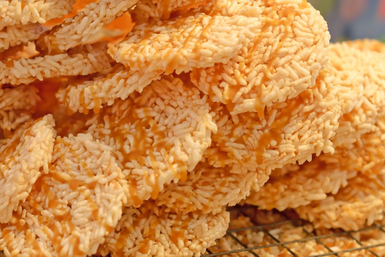 เมนูนี้รสชาติน่าสนใจสุดๆ เป็นขนมขบเคี้ยวรูปร่างกลมๆ ทำจากข้าวเหนียวที่นำไปผสมรวมกับน้ำตาล เกลือ งา และน้ำแตงโม จากนั้นนำไปตากแห้ง แล้วนำมาทอดจนกรอบฟู ปิดท้ายด้วยการราดน้ำตาลอ้อยบนหน้าขนม