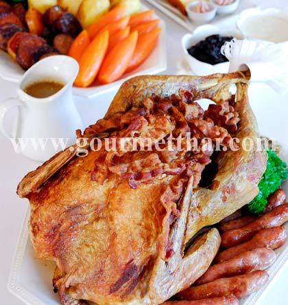 The Cup นำเสนออาหารโฮมเมดสไตล์อังกฤษ ภายใต้บรรยากาศสบายๆ ที่ให้คุณอิ่มเอมกับอาหารรสเลิศ พร้อมชมวิวทะเลสาบของสวนเบญจกิตติ ใกล้ศูนย์การประชุมแห่งชาติสิริกิติ์ ซึ่งอยู่ตรงข้ามร้านทางร้านคัดเลือกวัตถุดิบระดับพรีเมียมมาสร้างสรรค์เมนูต่างๆ ที่น่าสนใจมากมาย เช่น The Traditional Roast Turkey, Grilled Sausage and Bacon Served with Candied Sweet Potato, Brandied Gravy and Corn Bread with Raspberry Butter ไก่งวงสูตรพิเศษของร้าน เสิร์ฟพร้อมไส้กรอก เบคอน มันเคลือบน้ำเชื่อมบางๆ เพื่อตัดรส และบรั่นดีซอส พร้อมคอร์นเบรด กับเนยราสป์เบอร์รีที่อาจดูแปลกแต่ก็หอมอร่อย ซึ่งมีให้ลิ้มลองเฉพาะวันที่ 24-26 ธันวาคมนี้เท่านั้น