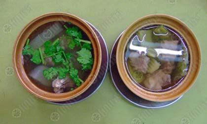 อีก หนึ่งสิ่งที่มาร้านนี้แล้วต้องลองคือ "น้ำซุป" หรือ "น้ำแกง" เฮียวัลลภมี 3 ซุปให้เลือกซด "เป็ดตุ๋นมะนาวดองใส่ฟัก" มีให้ซดทุกวันจันทร์ถึงอาทิตย์ ซุปน้ำใส เป็ดเนื้อคัดพิเศษตุ๋นจนเนื้อนุ่มล่อน โซ้ยสะดวก ซดสนุก "มะระต้มกระดูกหมู" ทุกวัน เว้น วันพุธ และวันอาทิตย์ มะระสั่งตรงมาจากราชบุรี มีรสไม่ขมจัด ต้มจนเนื้อนุ่ม น้ำซุปชุ่มคอ "กระเพาะหมูเกี้ยมไฉ่" มีทุกวันพุธและอาทิตย์ ที่มีแค่สองวันเพราะต้องทำอย่างพิถี พิถันและใช้เวลาล้างกระเพาะนานมากกกก..ต้องล้างให้สะอาดปราศจากกลิ่นคาว พลพรรคนักหม่ำกระเพาะหมูต้องลอง!
