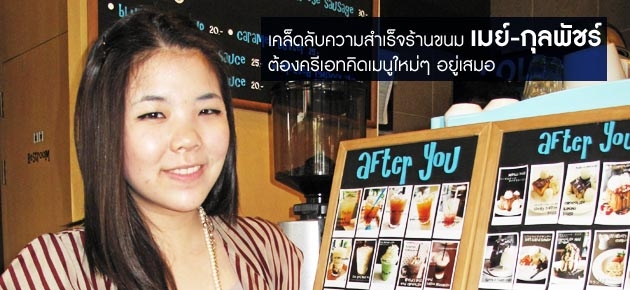 เพราะความช่างครีเอท ช่างคิด ช่างทำ จึงทำให้ร้านขนม After You ธุรกิจแรกในชีวิตของสาวเก่งวัย 27 ปี เมย์-กุลพัชร์ กนกวัฒนาวรรณ ประสบความสำเร็จเกินความคาดหมาย และเป็นแบบอย่างให้คนรุ่นใหม่อีกจำนวนไม่น้อยกล้าลงทุนทำในสิ่งที่ตัวเอง ถนัดและชื่นชอบ