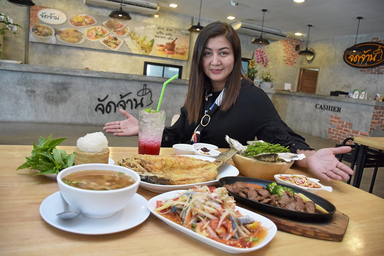 ความอร่อยสมราคา ส้มตำปูม้า 190 บาท, ตำไหลบัว 75 บาท, เนื้อย่างกระทะร้อน 190 บาท, หมูย่างกระทะร้อน 160 บาท และปลากะพงทอดน้ำปลา 380 บาท