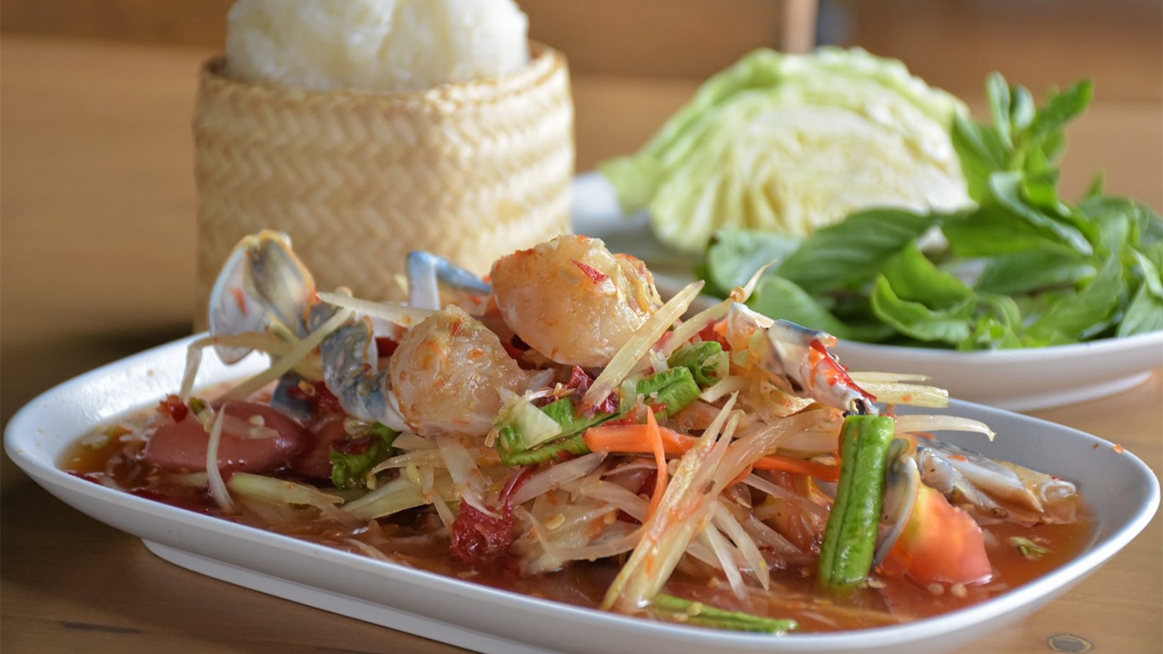 ผ่านไปครู่เดียวพนักงานเสิร์ฟยกจาน “ส้มตำปูม้า” มาวางตรงหน้า สีสัน กลิ่นของพริกและมะนาวลอยมากระทบจมูก ดึงดูดน้ำลายสอเต็มกระพุ้งแก้มต้องแอบกลืน ไม่พูดพร่ำทำเพลงคว้าส้อมเสียบเส้นมะละกอที่ถูกตำไม่ถึงกับแหลก แคะเนื้อปูม้าสดๆ เติมให้ครบในคำเดียวเคี้ยวเข้าปาก เส้นมะละกอชุ่มน้ำส้มตำยังกรอบ เนื้อปูนิ่มไร้กลิ่นคาว รสชาติแซ่บนัวระรัวลิ้น กินแล้วตาลุกปลุกน้ำย่อยให้ทำงานอีกครั้ง