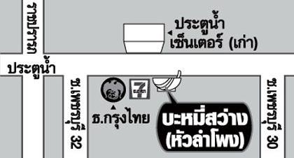 ร้าน "สว่าง (หัวลำโพง)" สาขาใหม่ที่ประตูน้ำ เปิดมาได้ประมาณ 6 เดือน ลูกค้าประจำ เริ่มทยอยมาหม่ำ โดยเฉพาะช่วงกลางวัน ลูกค้าจะมากเป็นพิเศษ ร้านใหม่ เปิดตั้งแต่ 11 โมงเช้าถึง 4 ทุ่ม ทุกวันไม่มีวันหยุด ร้านอยู่ตรงข้ามประ-ตูน้ำเซ็นเตอร์ ระหว่างซอยเพชรบุรีซอย 30 และเพชรบุรีซอย 32 หน้าร้านจะมีป้ายเห็นเด่นชัด