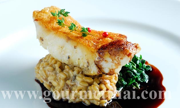 ห้ามพลาดกับจานเด็ดเมนูใหม่ที่คุณจะได้กินถึง 2 เมนูในจานเดียว Pan-roasted Red Grouper with Porcini & Duck Confit Risotto, Red Wine Sauce ปลาเก๋าแดงทอดแล้วอบจนหนังกรอบ แต่เนื้อยังนุ่มชุ่มน้ำรสหวานฉ่ำ เสิร์ฟบนริซอตโตสุดครีมมี่ที่ผัดกับเป็ดกงฟีเนื้อนุ่มราดด้วยซอสไวน์แดง.