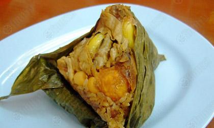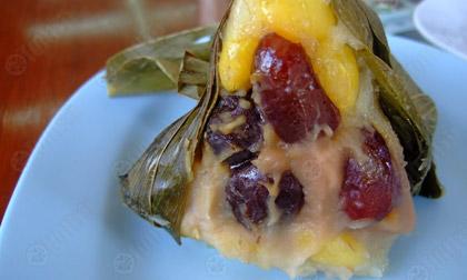 ตัวข้าวเป็นข้าวเหนียวเขี้ยวงู แช่ทิ้งไว้ข้ามคืน ตื่นมามูนข้าวโดยใช้กับนมสดปรุงรสด้วยน้ำตาล เล็กน้อย เติมกลิ่นด้วยใบเตยสด รสชาติคล้ายข้าวเหนียวมูนแต่มีกลิ่นนมสดอ่อนๆ ไม่หวานเลี่ยนเกินไป จากนั้นนำมาห่อรวมกับเผือกกวน แปะก๊วย และพุทราจีนเชื่อม แล้วนำไปนึ่งไฟอ่อนๆ ไฟไม่ต้องร้อนจัด เม็ดข้าวจะสุกเหนียว นุ่มกำลังดี โซ้ยกับชาร้อนๆตอนบ่าย อิ่มสบายท้อง