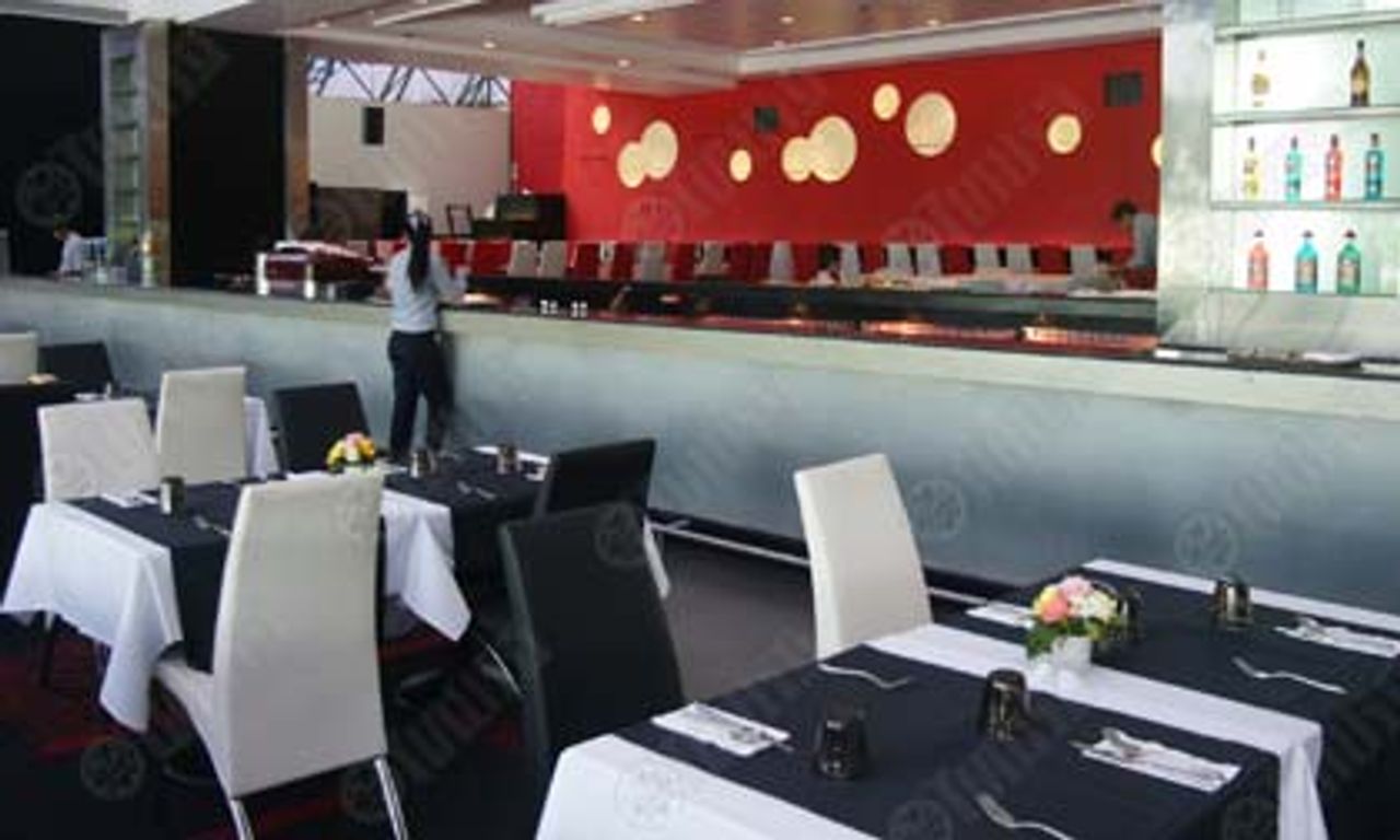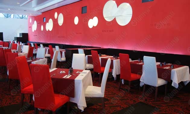 มาที่การตกแต่งภายใน ส่วนของ Indoor จะเน้นความโมเดิร์น ของทุกอย่างที่นำมาตกแต่งจะมีสไตล์ไปในทางเดียวกัน เช่น เก้าอี้ โต๊ะ เคาน์เตอร์บาร์ ซึ่งจะใช้สีขาวดำเป็นหลัก แต่ก็เพิ่มความโดดเด่นได้อย่างสะดุดตาที่ผนัง ซึ่งใช้สีแดงมาเป็นตัวเบรก ทำให้บรรยากาศดูสนุกสนานมากกว่าเงียบขรึมเกินไป ในส่วนของพื้นที่เชื่อมต่อกับด้านนอก ก็เพิ่มกระจกตลอดแนว เพื่อให้เห็นวิวด้านนอกได้ด้วย อีกทั้งยังทำให้ด้านในดูกว้างและสว่างมากขึ้น