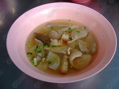 นอกจาก “ก๋วยจั๊บ” รสแจ่มๆแล้ว เฮียเม้งยังมี “เกาเหลาเลือดหมู” รสกลมกล่อมไว้คอยเสิร์ฟร้อนๆพร้อมข้าวสวย น้ำซุปซดง่ายสบายกระเพาะ เห็นน้ำใส๊...ใส แต่ขอบอกว่ารสชาติไม่ธรรมดา!!