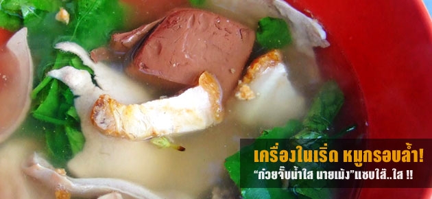 หนึ่งในอันดับต้นๆของวงการก๋วยจั๊บน้ำใสแห่งประเทศไทย ต้องมีชื่อของ “ก๋วยจั๊บน้ำใสนายเม้ง” แทรกเสียบอยู่ไม่อันดับใด ก็อันดับหนึ่ง ด้วยความกลมกล่อมของน้ำซุปที่ทั้งหอมหวานผสานความเผ็ดร้อนของพริกไทยได้ อย่างลงตัวดี มีเครื่องในหลากหลายชนิดให้เลือกหม่ำ ทั้งสด ทั้งใหม่ ไม่คาว หมูกรอบ...กร๊อบ...กรอบสะท้านกราม ความกรอบกระแทกใจ โซ้ยแล้วมันส์หยุดม่ายด้ายยยยยย!!