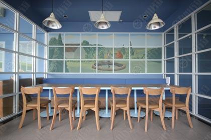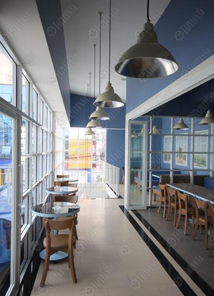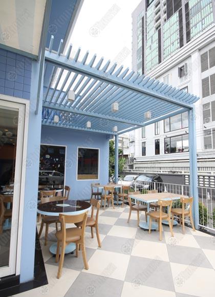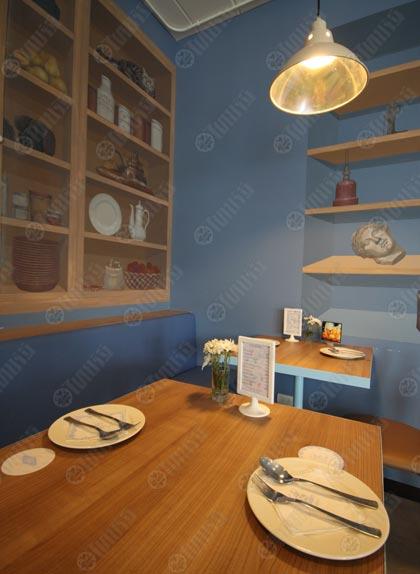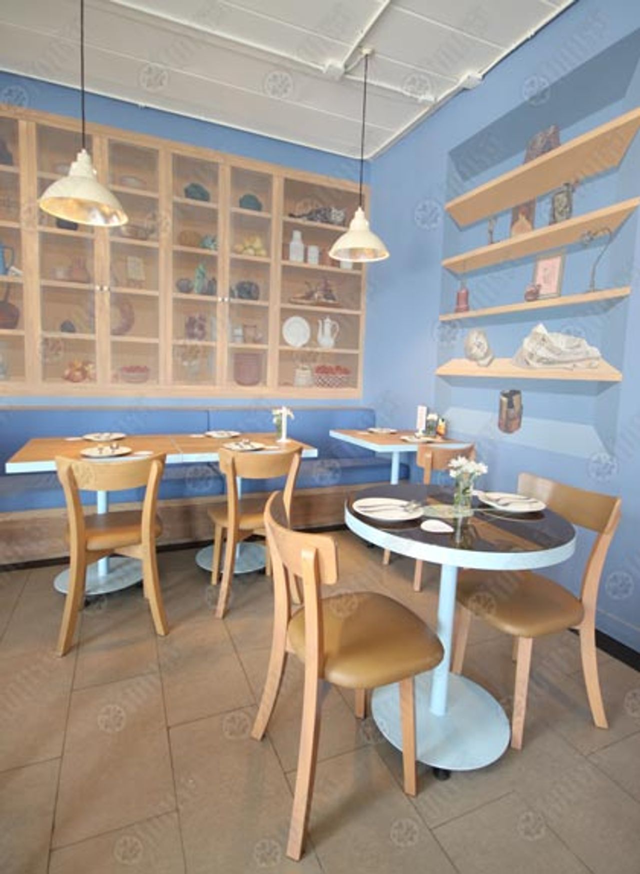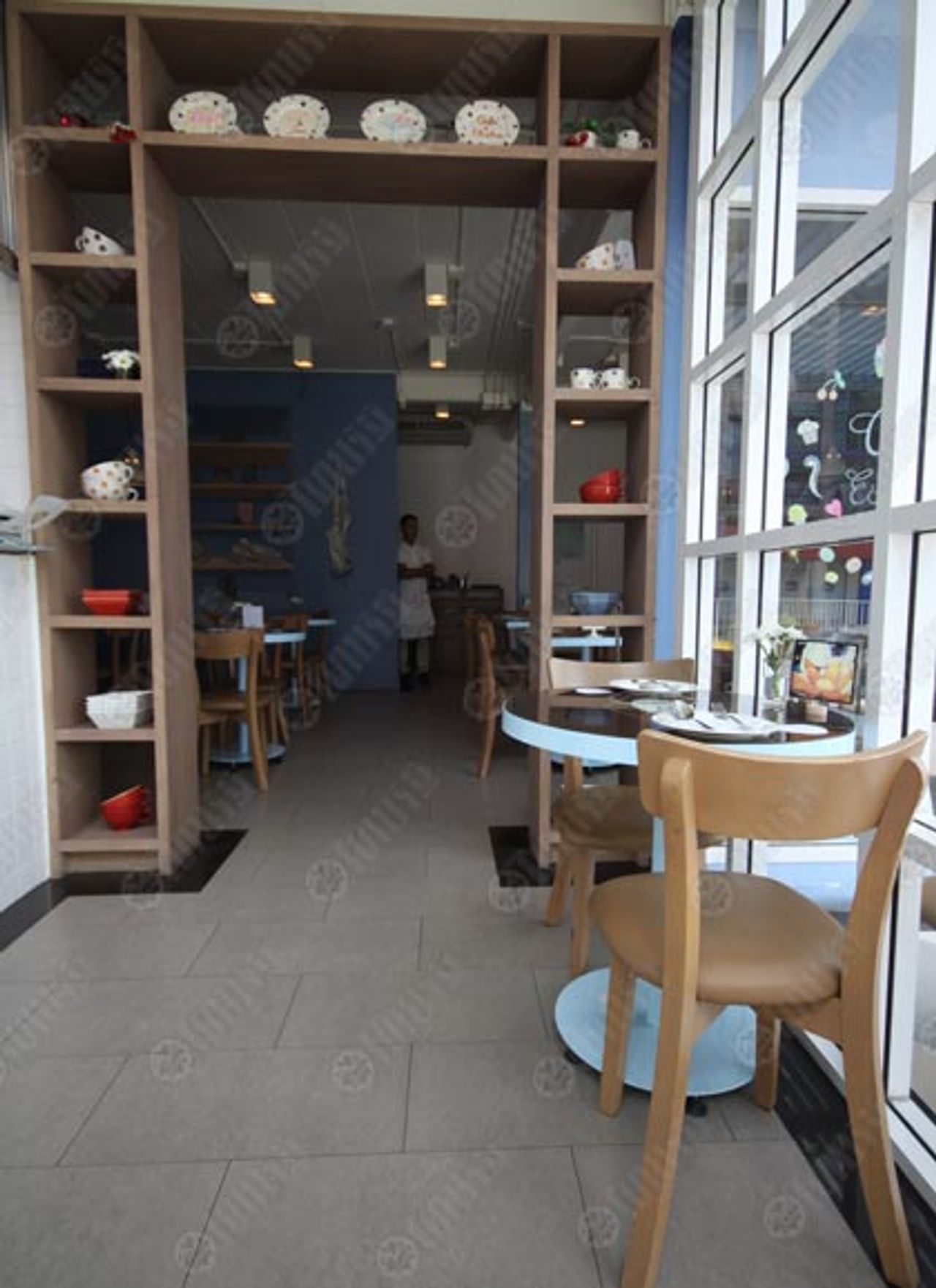 "ร้านนี้ตัวโครงสร้างเป็นของเดิมหมดค่ะ แต่เรามารีโนเวทใหม่นิดหน่อย ตอนแรกที่คิดคืออยากใช้สีขาวเป็นตัวหลักของร้าน แต่พอดีด้านหมอดูฮวงจุ้นเขาบอกว่าควรมีสีฟ้าหรือเขียวอยู่ด้วย ก็เลยเลือกสีฟ้า เพราะมันได้ตัดกับสีขาวแล้วดูลงตัวดีค่ะ ส่วนภายในร้านแก้มคิดว่าตั้งแต่แรกแล้วว่าอยากให้แตกต่างจากร้านอาหารย่านนี้ ที่อาจจะตกแต่งด้วยแชนเดอเรีย หรือตั้งวางของโชว์เฉยๆ เลยคิดว่าใช้การเพ้นท์ผนังดีกว่า เพราะน้องที่เขามาทำให้ก็เก่ง และทำงานแฟชั่นโชว์กับ Kloset อยู่แล้ว พอรู้ใจกันเลยให้เขามาทำให้ ส่วนเฟอร์นิเจอร์ แก้มก็จะปรึกษากับอินทีเรียตลอดว่าน่าจะเป็นแบบไหน ทุกชิ้นที่เห็นก็สั่งทำใหม่หมดเลยค่ะ จะได้ดูแมทช์กัน ซึ่งพอออกมา ตัวแก้มเองถูกใจมากนะสำหรับร้านนี้ เพราะทำเองทุกอย่างตั้งแต่ต้นจนถึงเลือกจานข้าว ช้อน ส้อม ทิชชู ซึ่งก็ต้องให้เข้ากับร้าน"