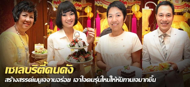 สำหรับ “เชฟฝ้ายฟู ภัทรานวัช” เชฟสาวรุ่นใหม่จากรายการครัวอินดี้ ร่วมครีเอตเมนูอาหารเจแนวน่ารักน่าชิมสไตล์วัยรุ่น ตั้งชื่อว่า ช็อกโกแลตสตรอเบอร์รี่ นำสตรอเบอร์รี่ลูกโตมาชุบกับดาร์กช็อกโกแลต แล้วคลุกกับมะพร้าวอบ หรืออัลมอนด์อบ จะจัดใส่จาน หรือใช้ไม้จิ้มฟันเสียบ ก็อร่อยแบบมีสไตล์เกินห้ามใจ ส่วนใครที่ชื่นชอบช็อกโกแลตเค้ก เจ้าของร้านอาหารมังสวิรัติชื่อดัง “อโณทัย ก้อง-วัฒนา” ก็มีสูตรทำ ช็อกโกแลตเค้กไม่ใส่ไข่และนม มาให้ไปลองทำชิมที่บ้าน เพื่อต้อนรับเทศกาลอาหารเจ โดยใช้น้ำเสาวรสผสมผงโกโก้และผงฟูตีให้ขึ้นฟูแทนไข่และนม รับรองว่าอร่อยไม่แพ้กัน