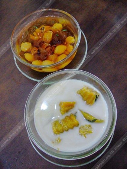 จบจาก คาวต่อกันที่ของหวาน ในแต่ละวันทางร้านจะทำของหวานสลับสับเปลี่ยนกันไป ไม่ว่าจะเป็น แปะก้วยน้ำลำไย, ฟักทองแกงบวด, กล้วยบวชชี, สาคูบัวลอยกะทิสด รสชาติไม่หวานจัด โซ้ยปิดท้ายอิ่มสบายอารมณ์