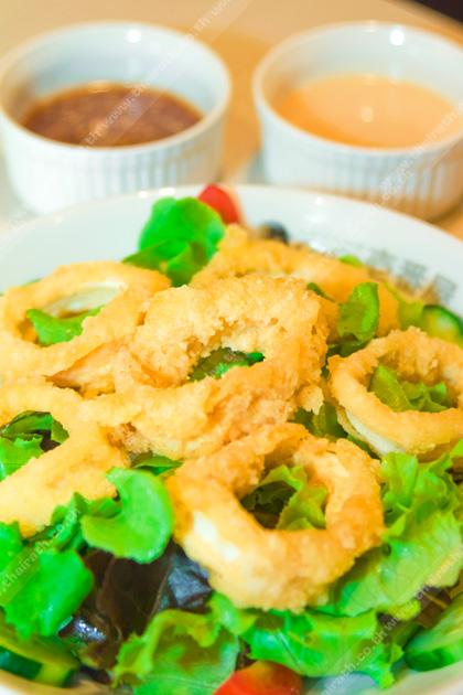 เจออาหารจานหลักที่อัดแน่นทั้งเครื่อง และปริมาณกันไปแล้ว มาต่อด้วยจานเบาๆกันที่เมนู สลัดปลาหมึกทอดกรอบ โดยมีให้เลือกน้ำสลัด 2 แบบคือ น้ำสลัดซีอิ๊วญี่ปุ่น และน้ำสลัดผสมงา ซึ่งอร่อยทั้ง 2 รสชาติ เข้ากับผักสดและปลาหมึกทอดกรอบได้ดีจริงๆ แต่ถ้าใครกลัวคอเรสเตอรอลจะขึ้นสูง เพราะปลาหมึก ที่นี่ก็มีเซ็ทสลัดพร้อมเครื่องดื่มเป็นอีก 1 ทางเลือก
