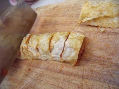 5. ใช้มีดตัดเป็นชิ้นพอดีคำ และจัดใส่จาน